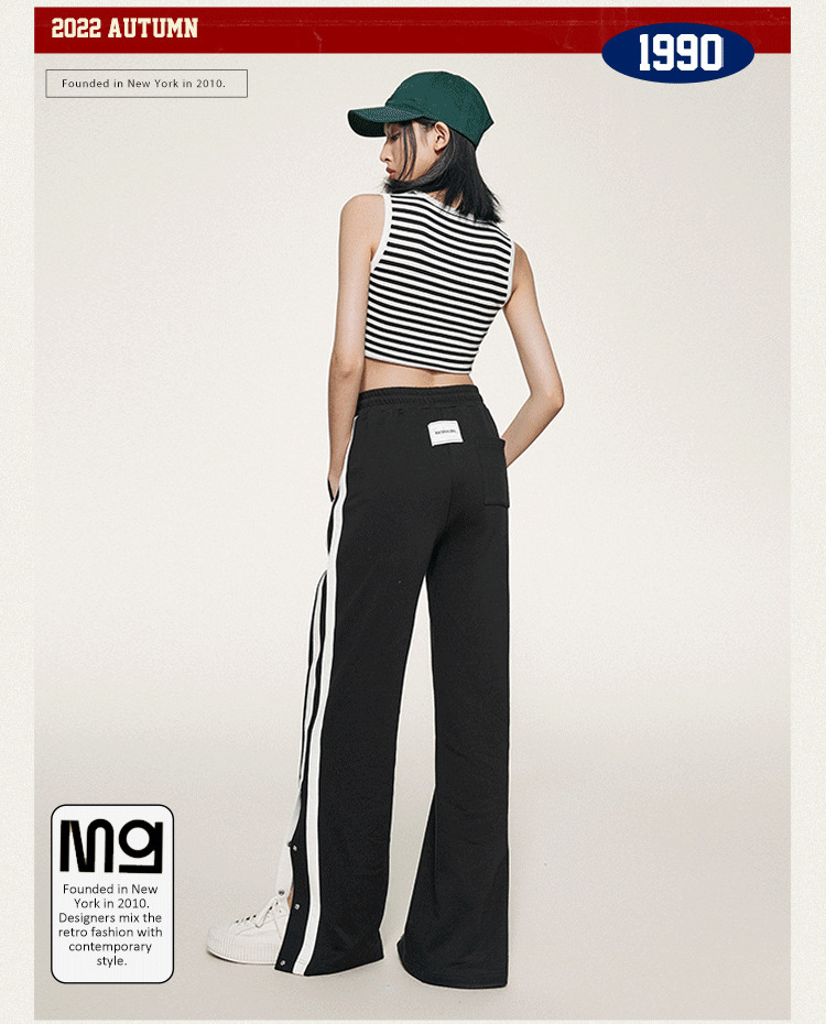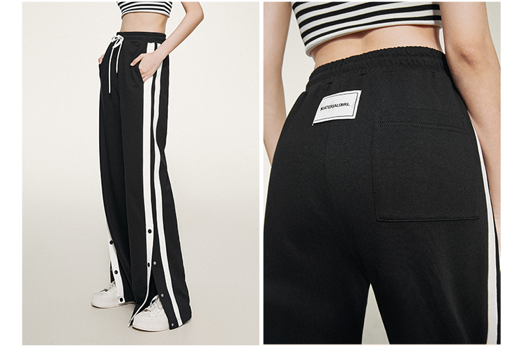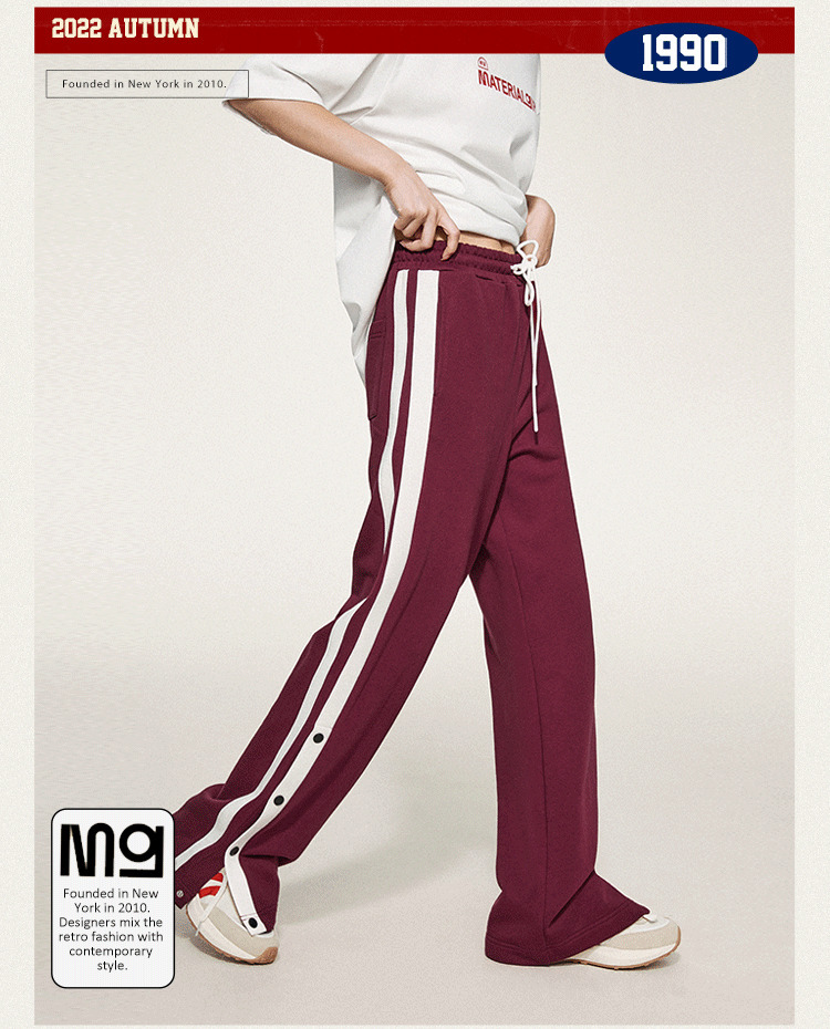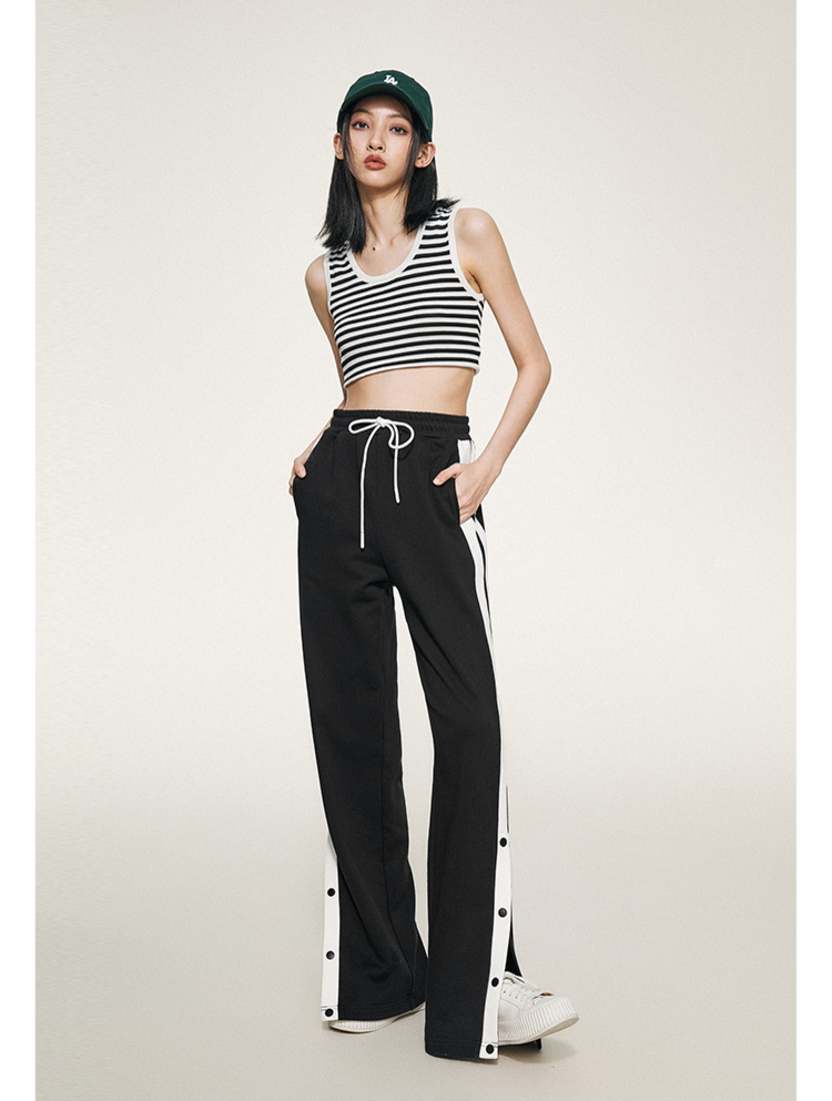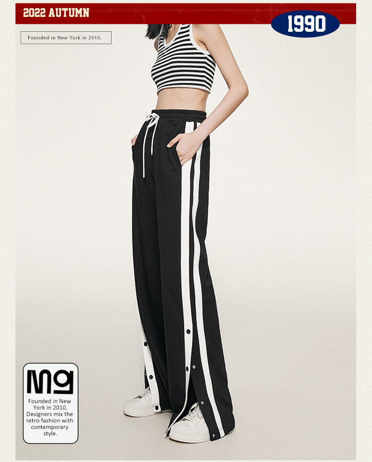 1990s學院側排釦抽繩長褲