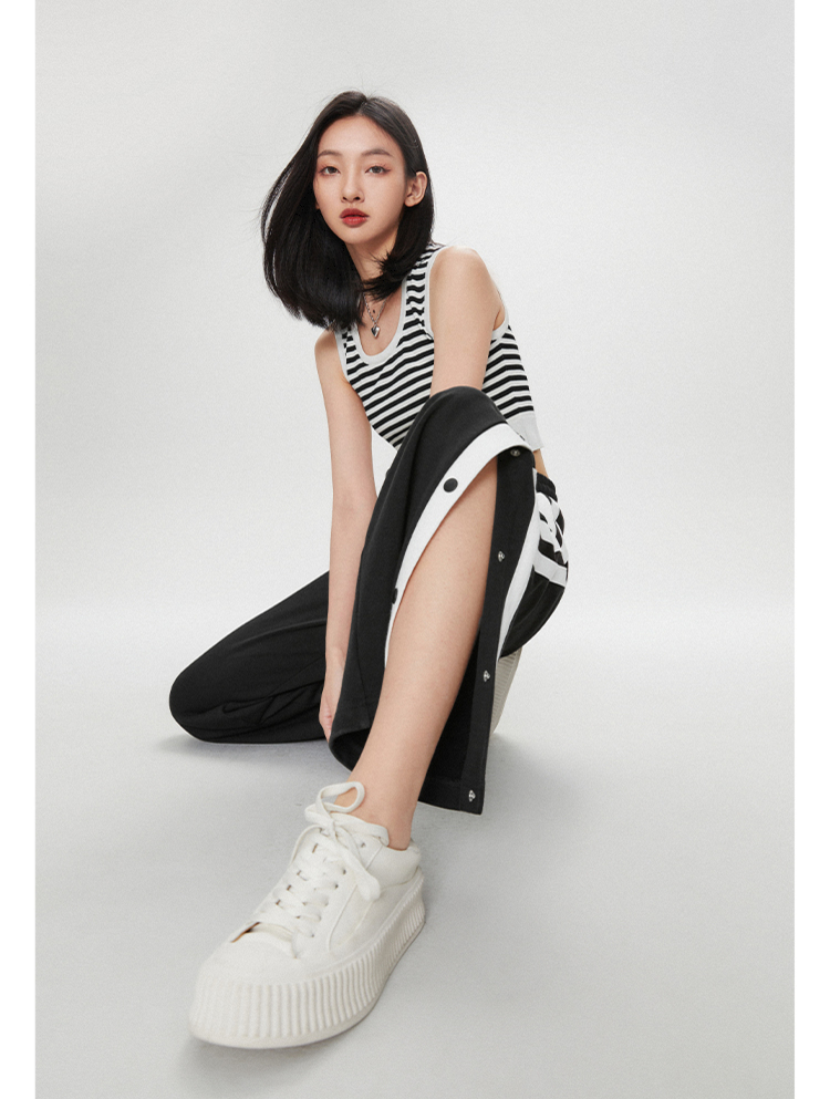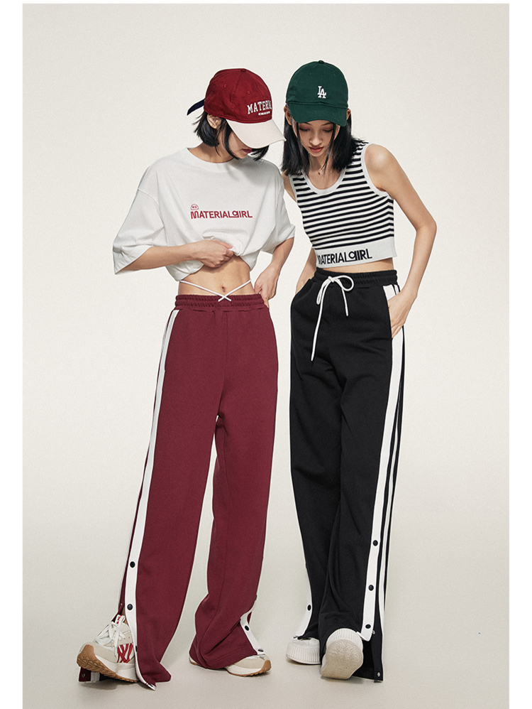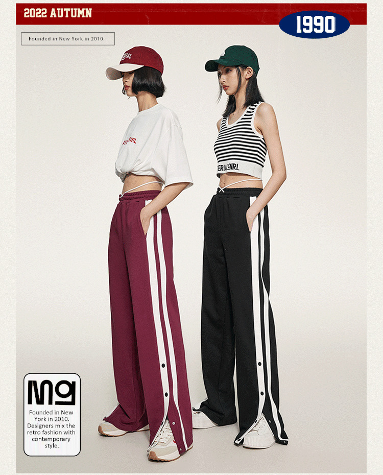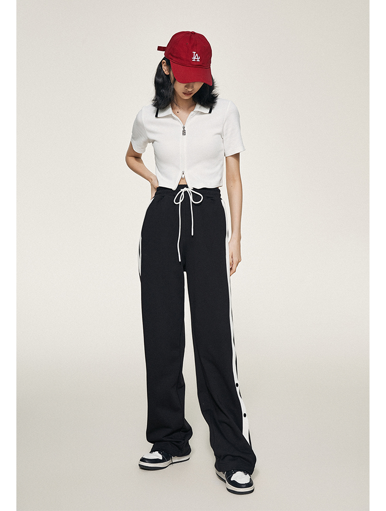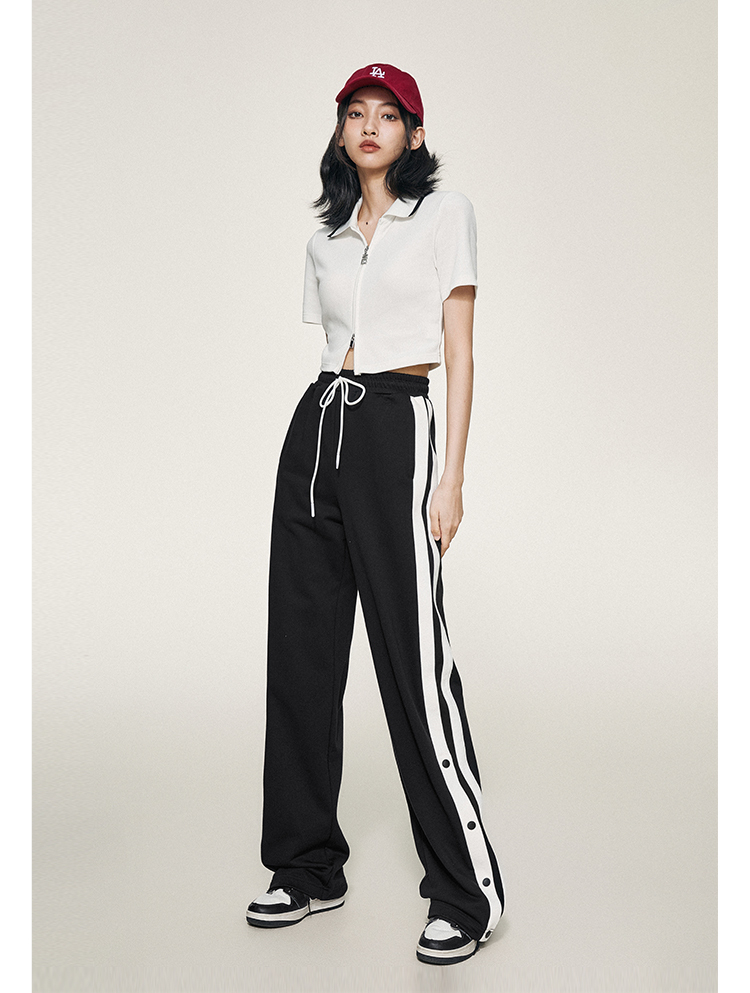 1990s學院側排釦抽繩長褲