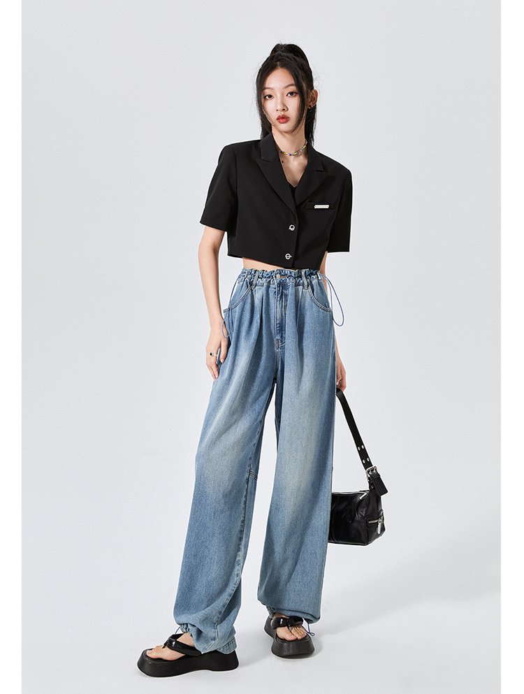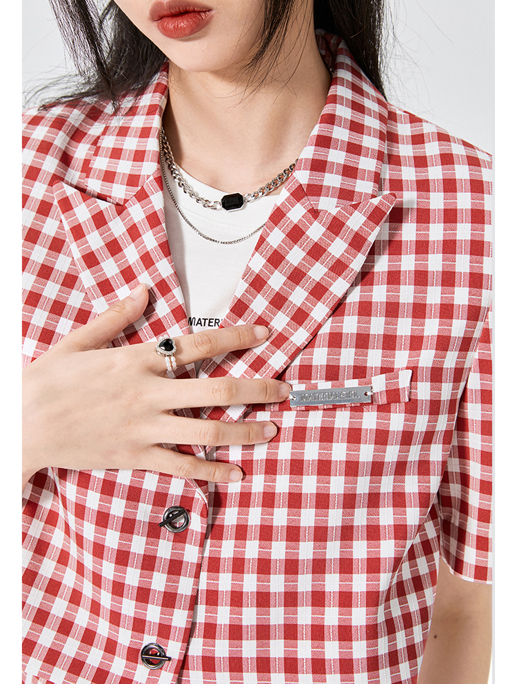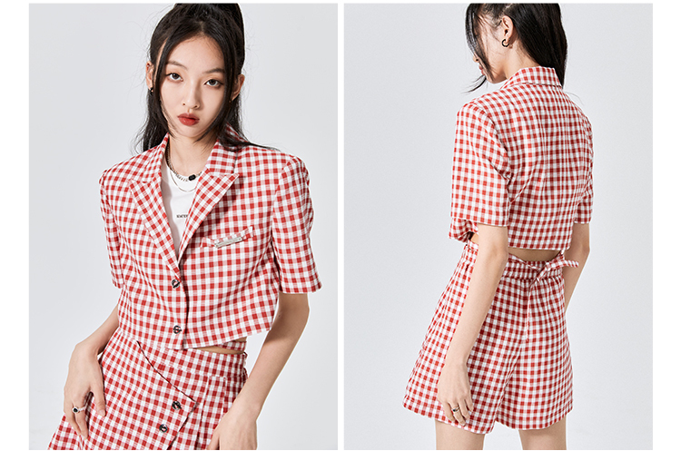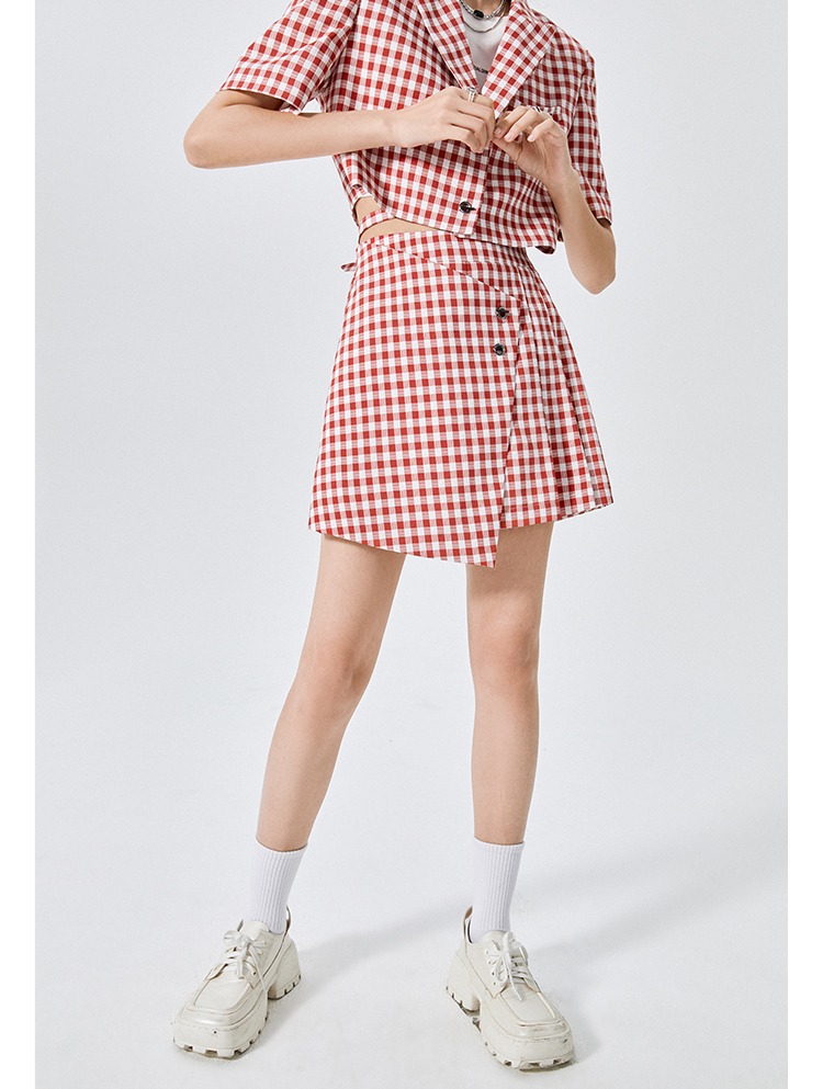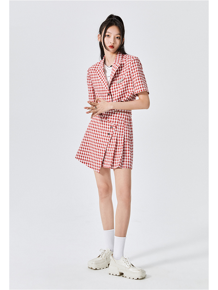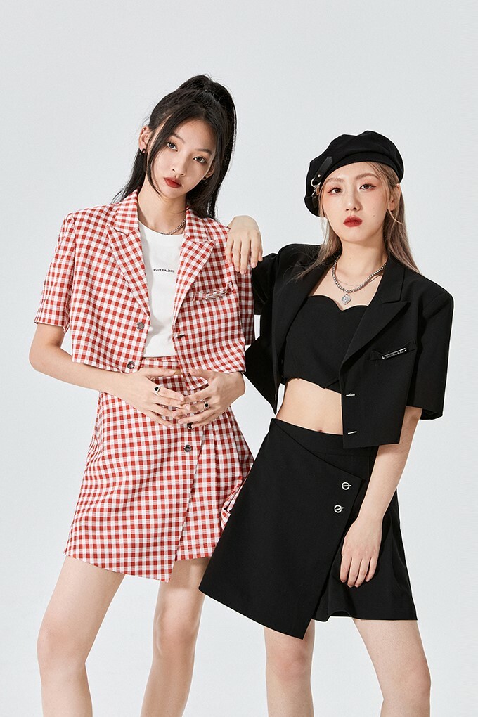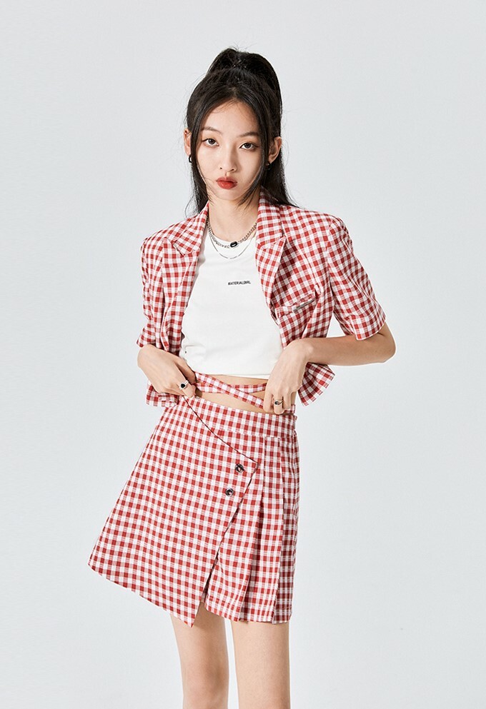 ABG短版綁帶西裝外套/不規則百褶褲裙(套裝)