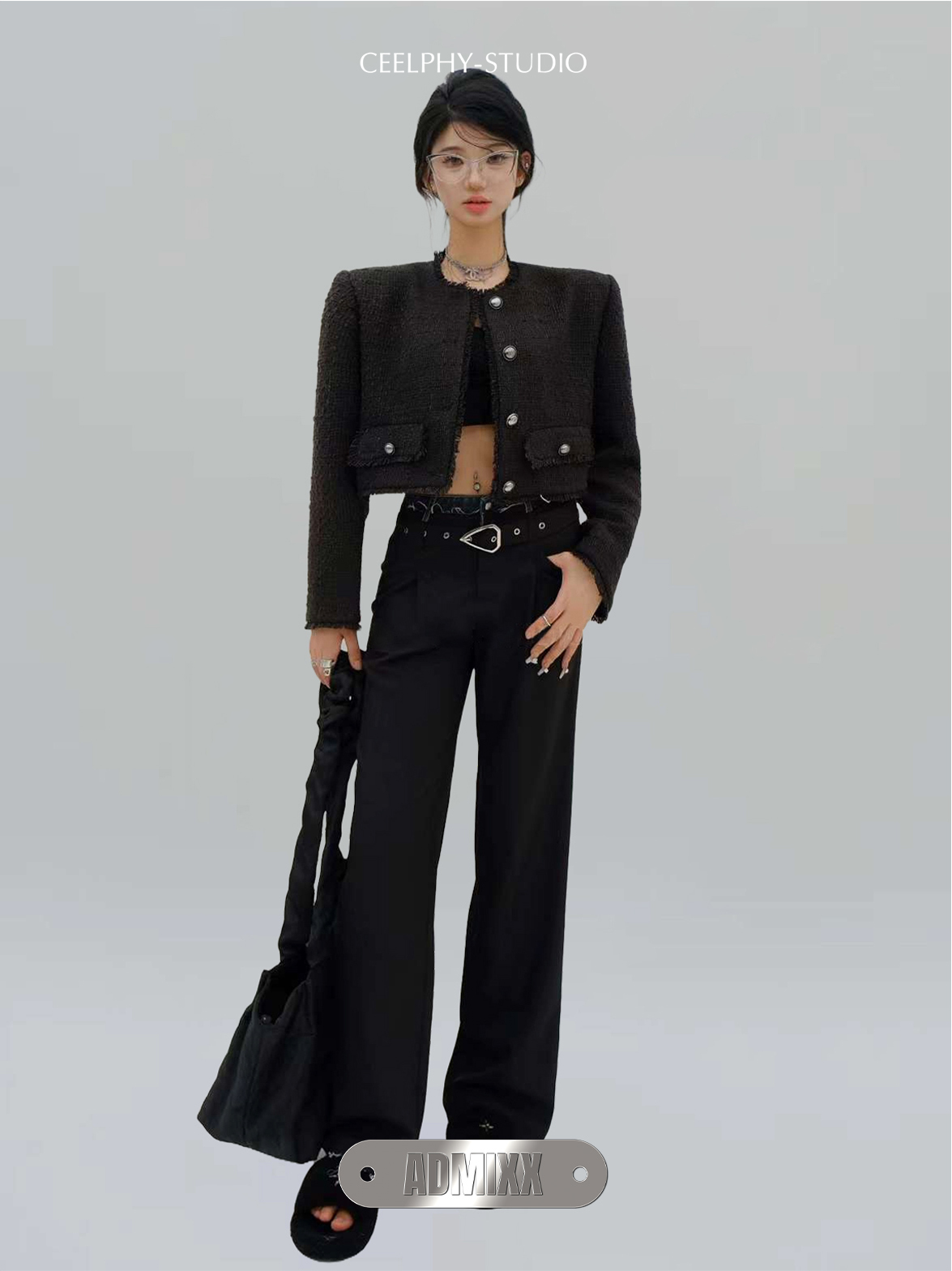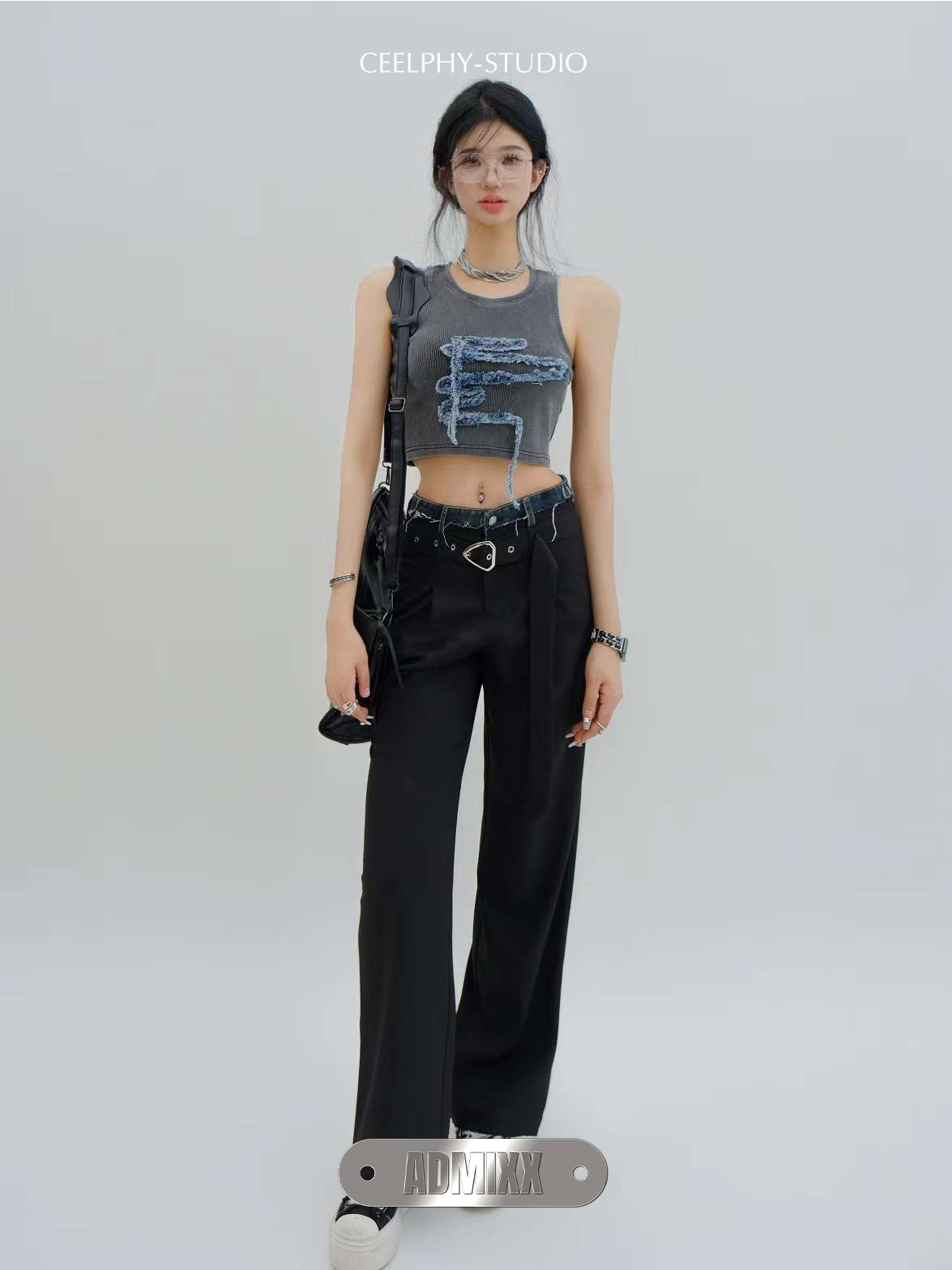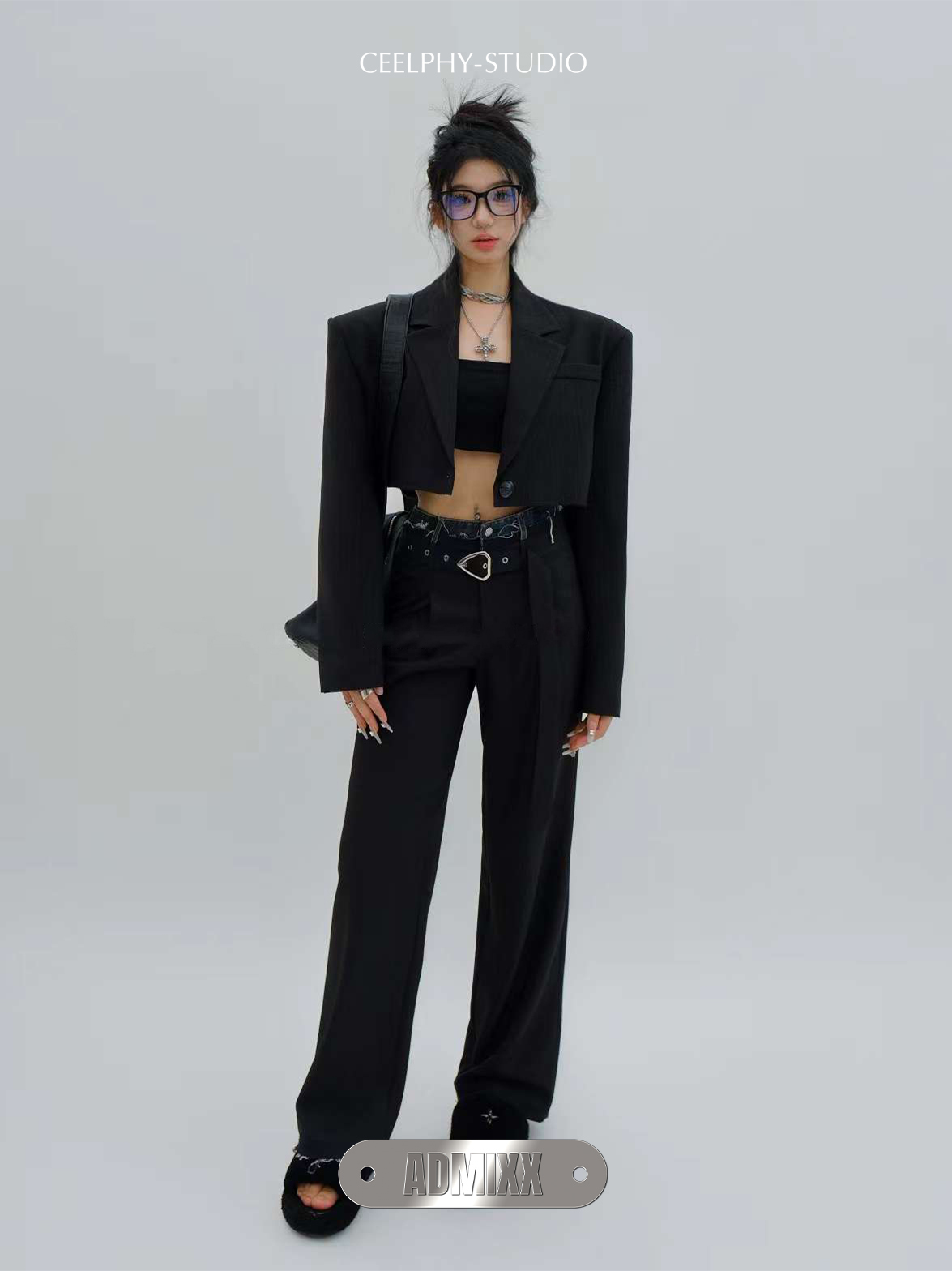 異材質拼接雙層褲頭長褲(丹寧牛仔布×西裝布)