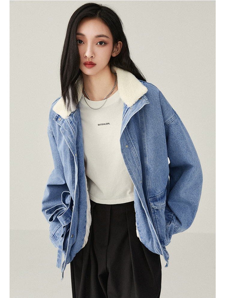 城市項目毛領新中式結可拆牛仔羽絨外套
