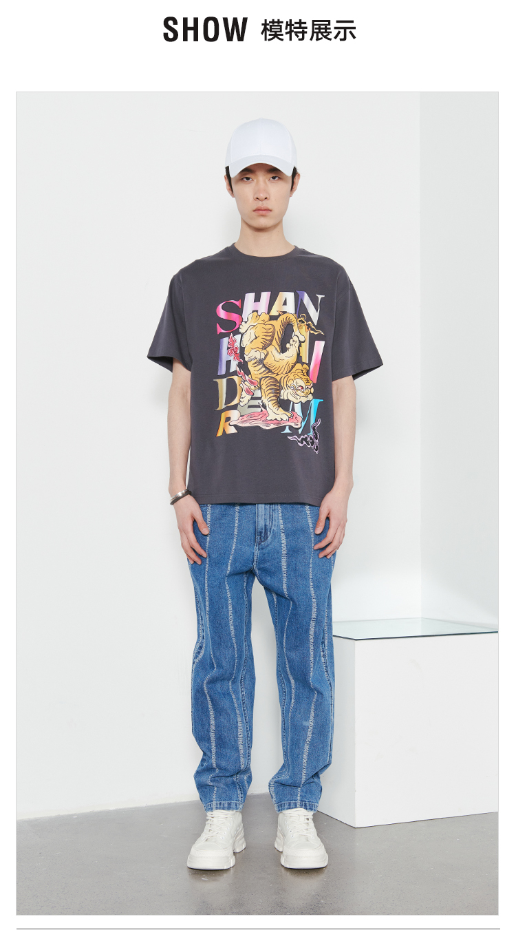 丹寧玩家造型車縫線牛仔長褲