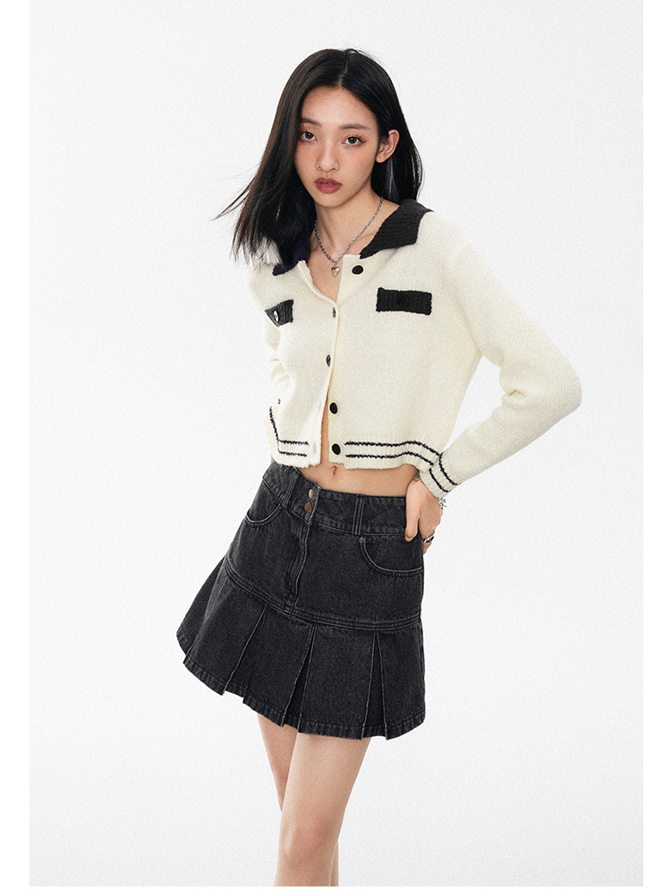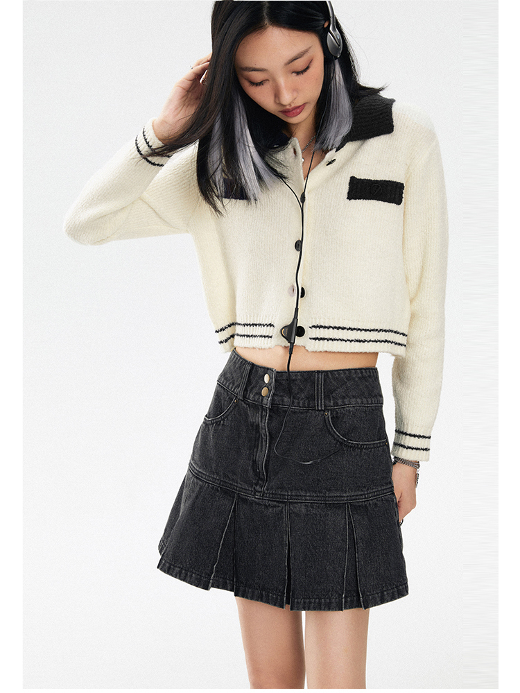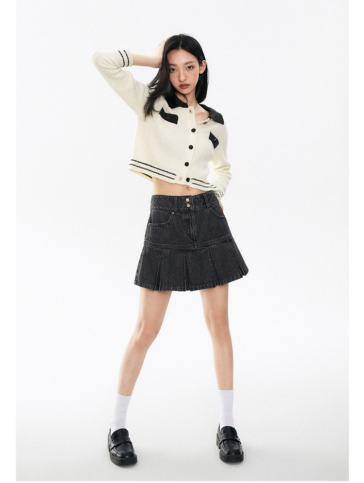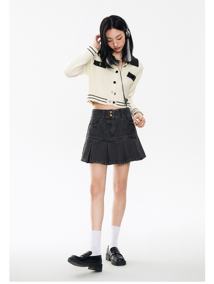 花語雙釦牛仔百褶裙