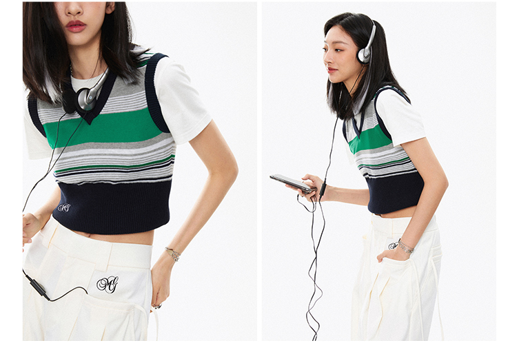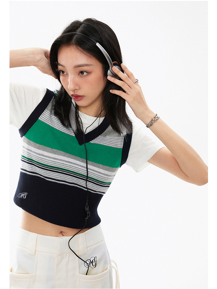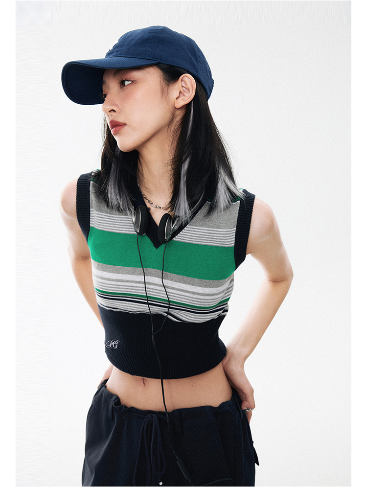 L.A. City撞色縮腰針織背心