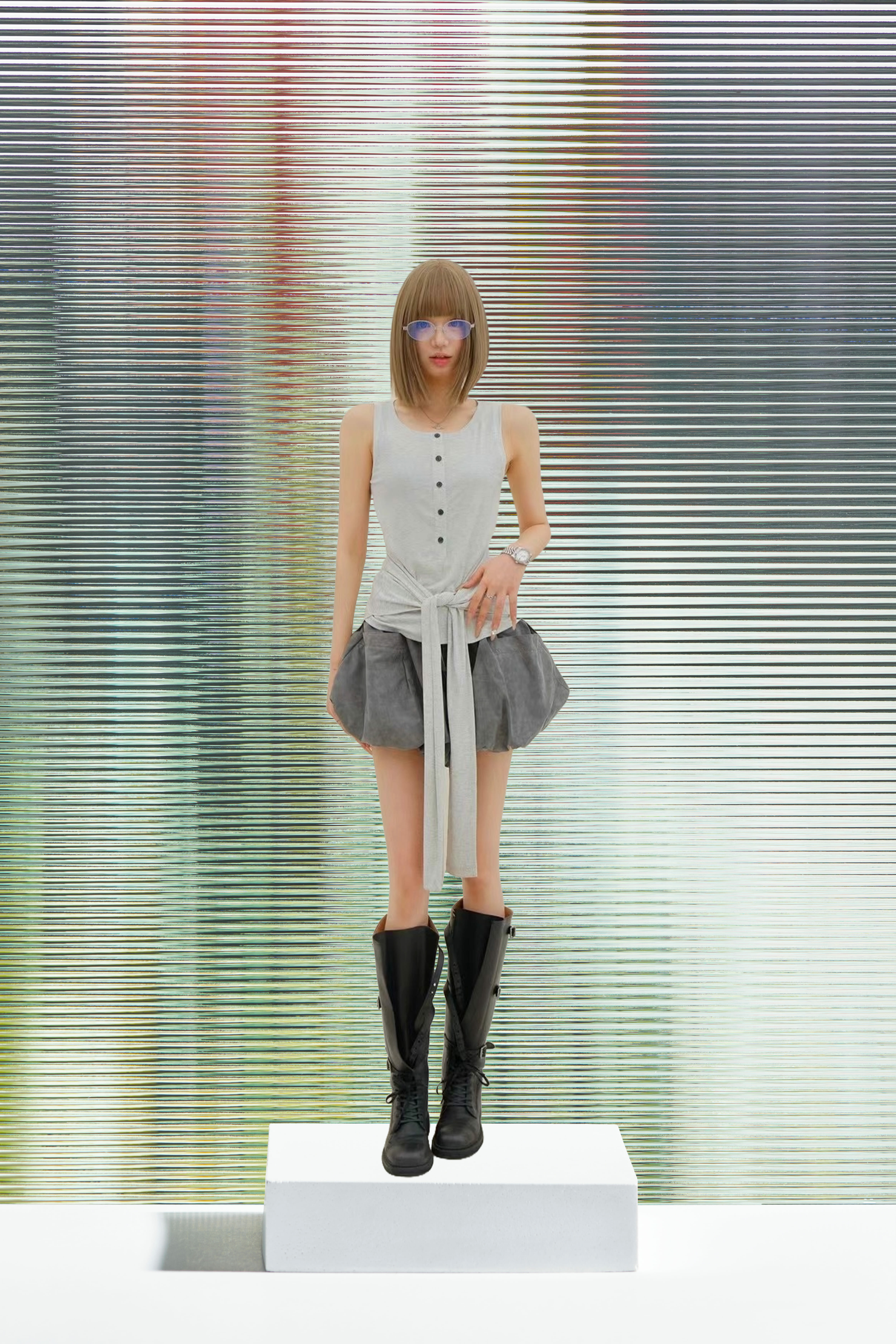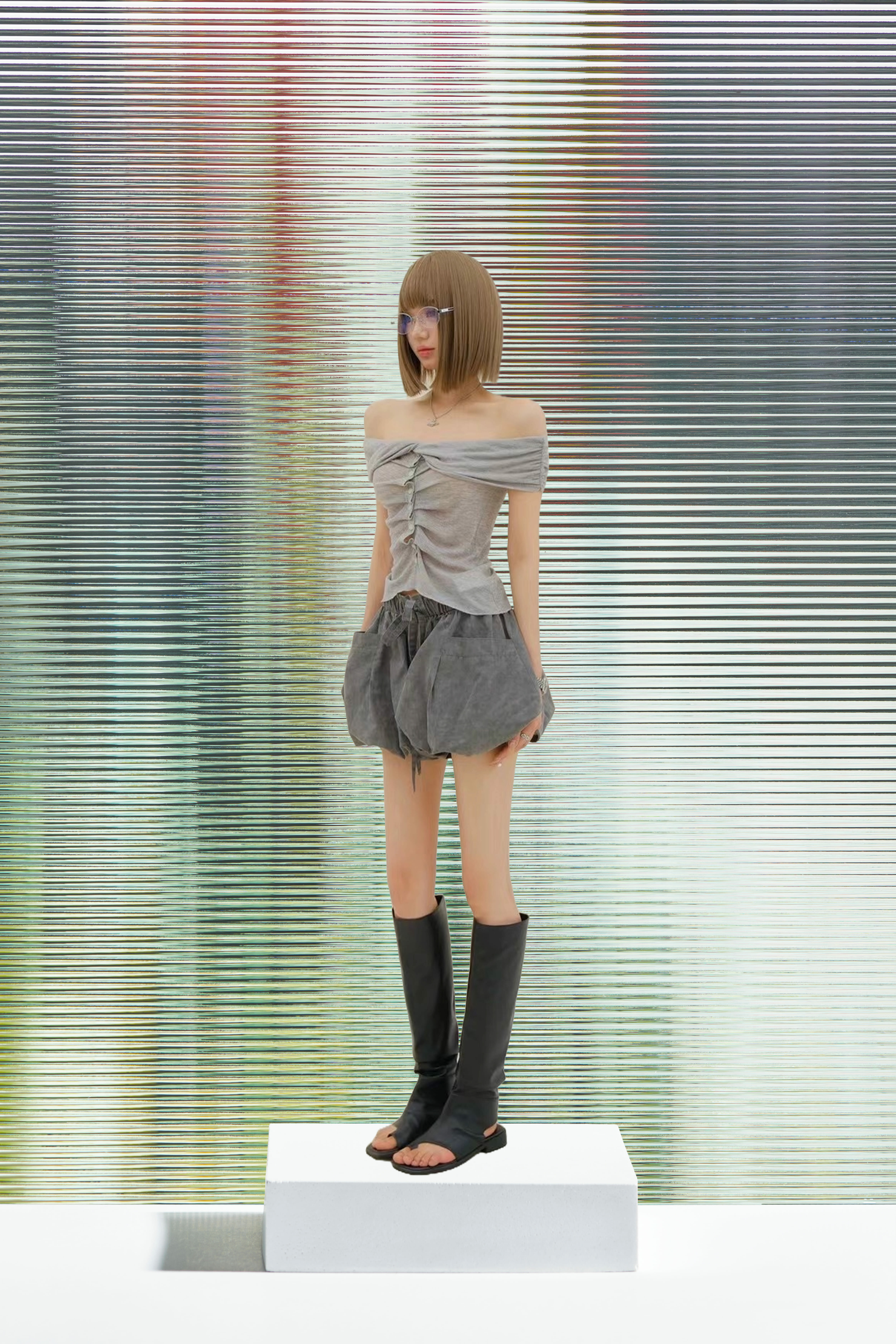 雪花灰大口袋抽繩綁帶花苞褲裙