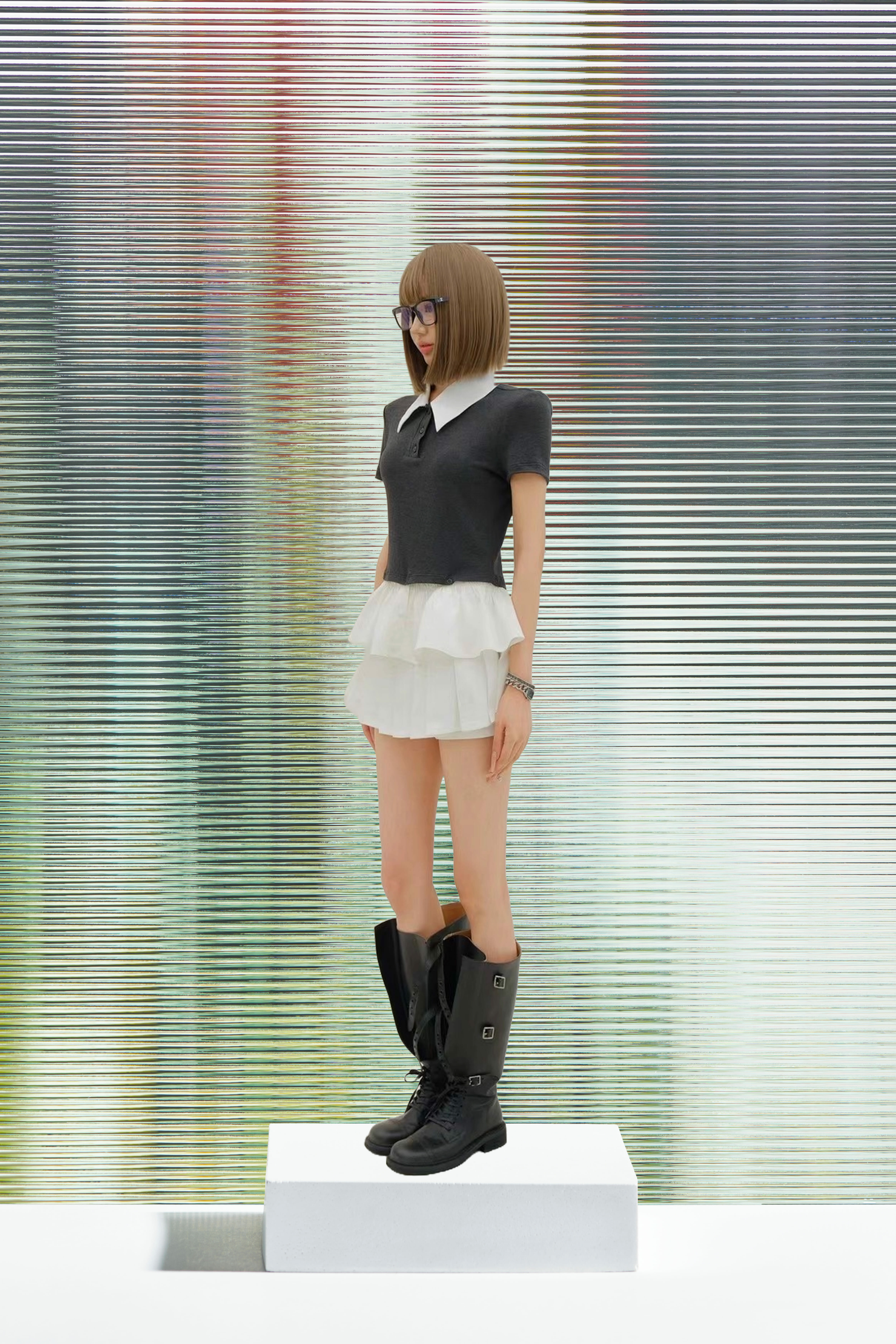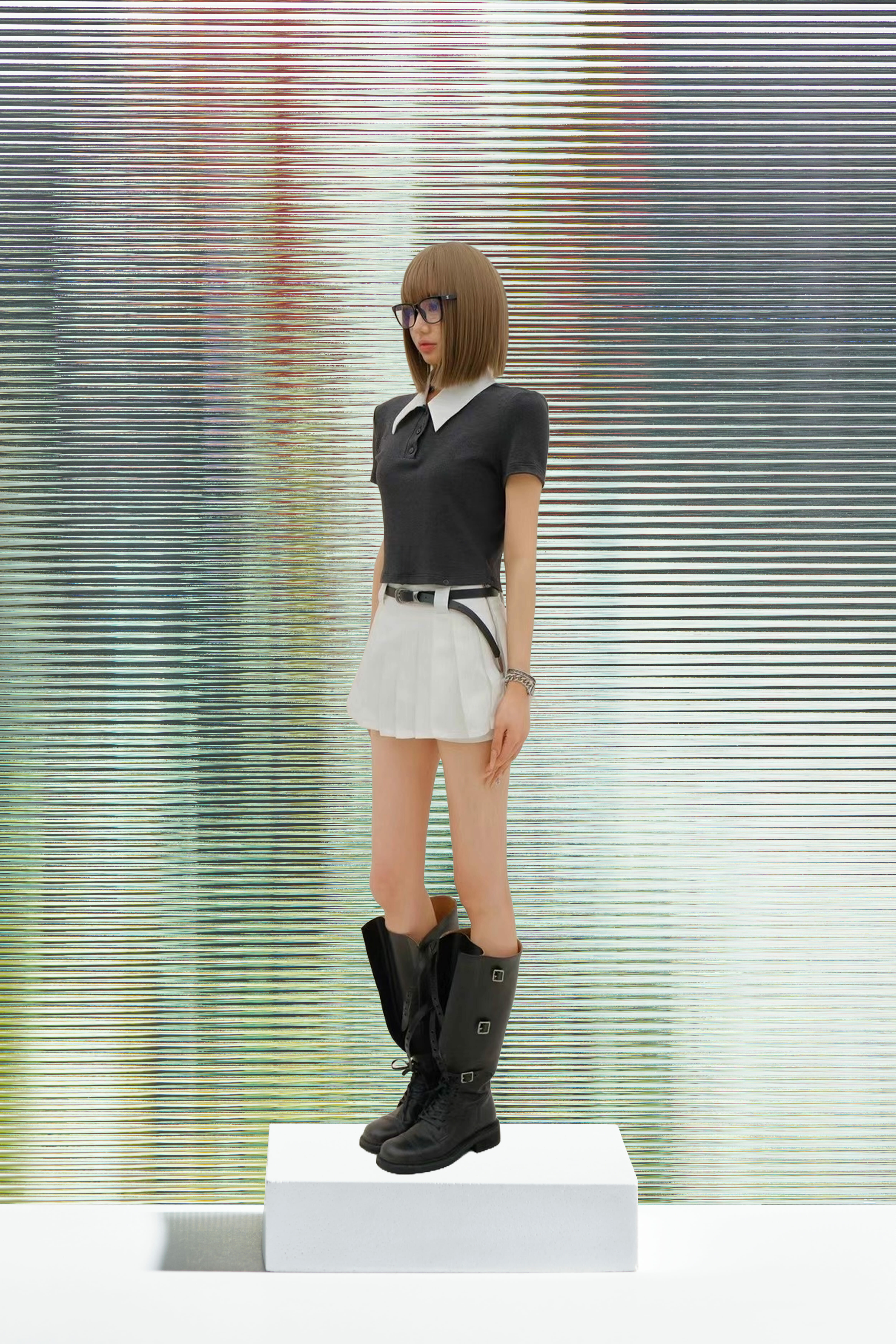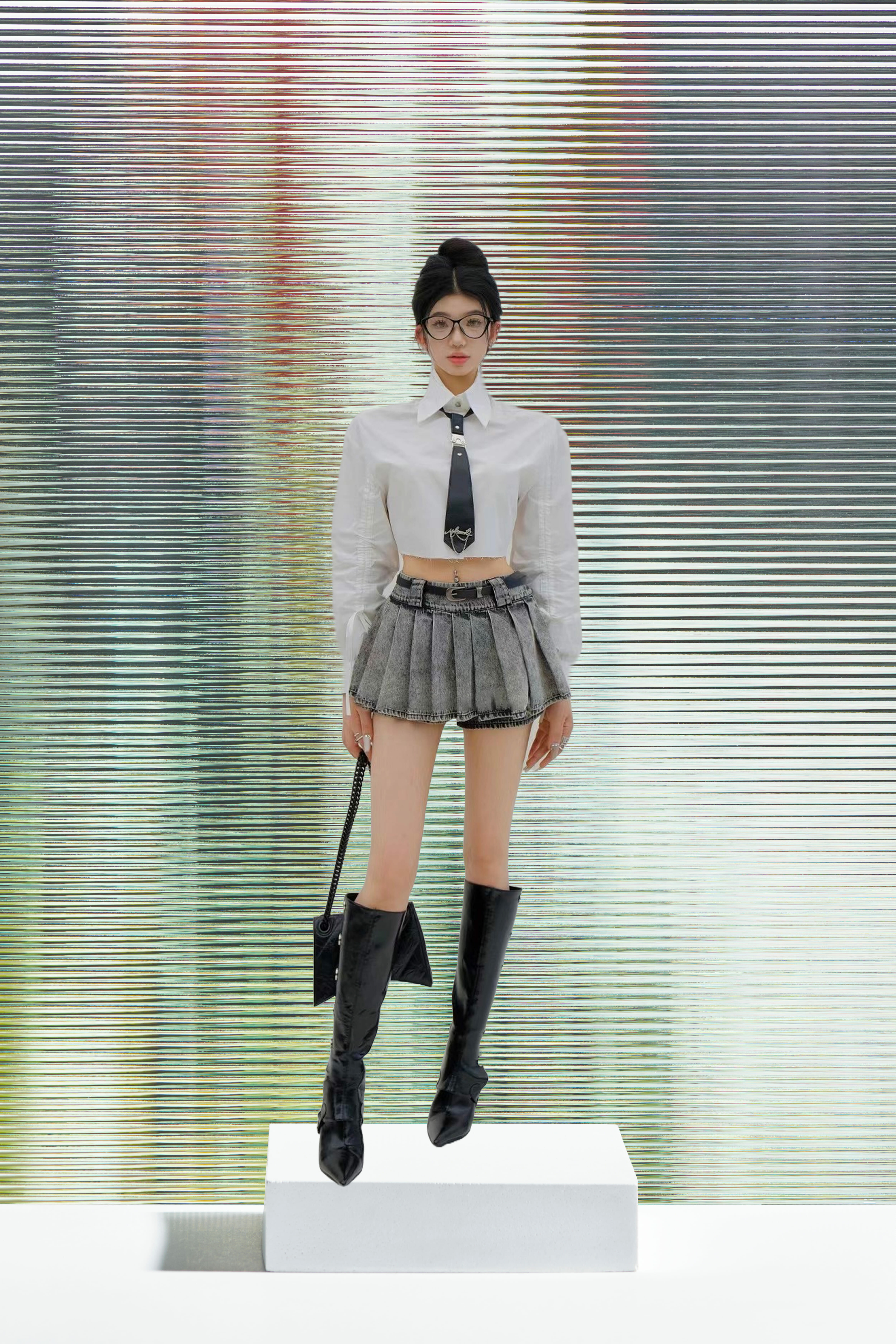 丹寧牛仔百褶短裙(附皮帶;有內襯褲)