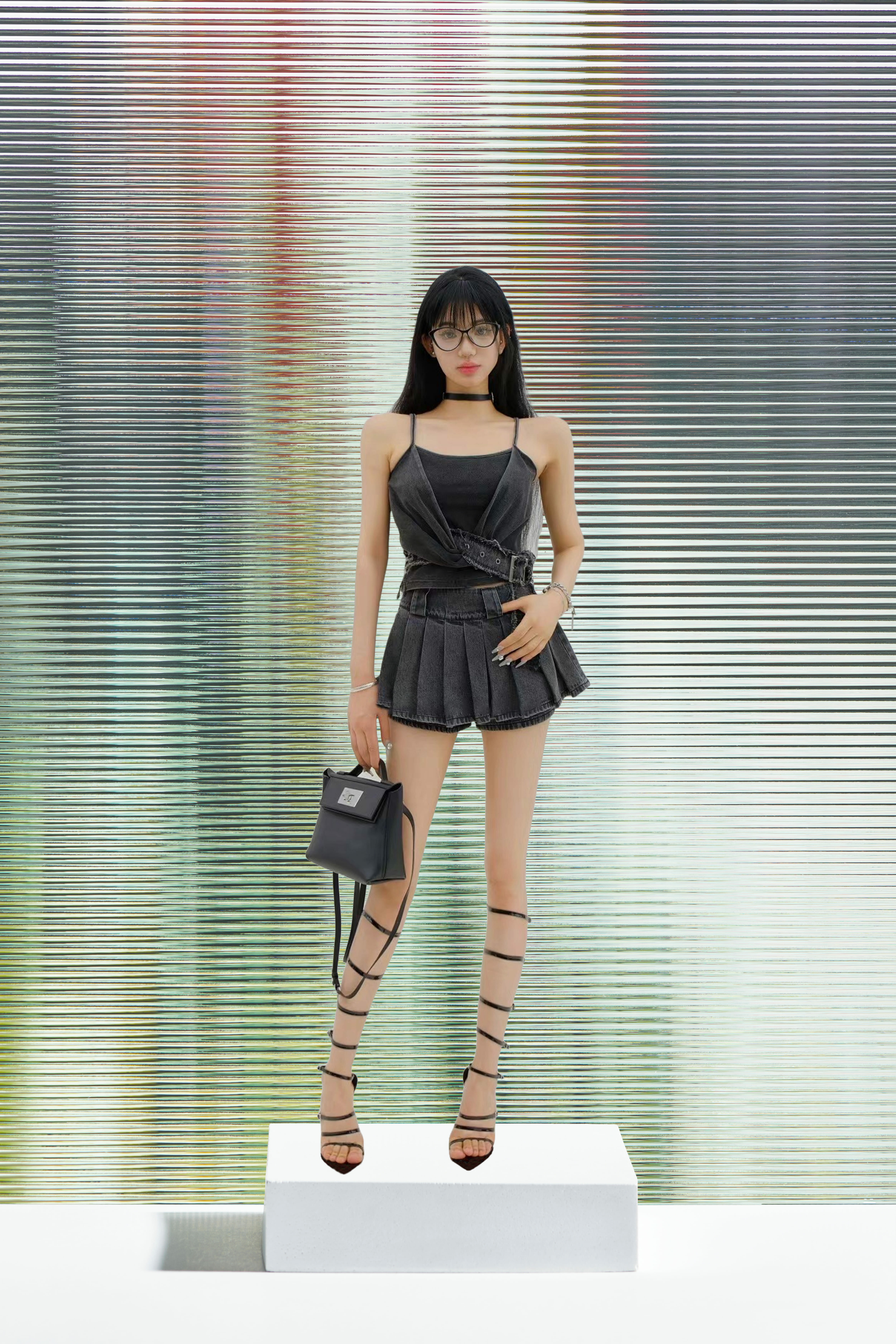 丹寧牛仔扭結下襬背心(附牛仔布寬腰帶)
