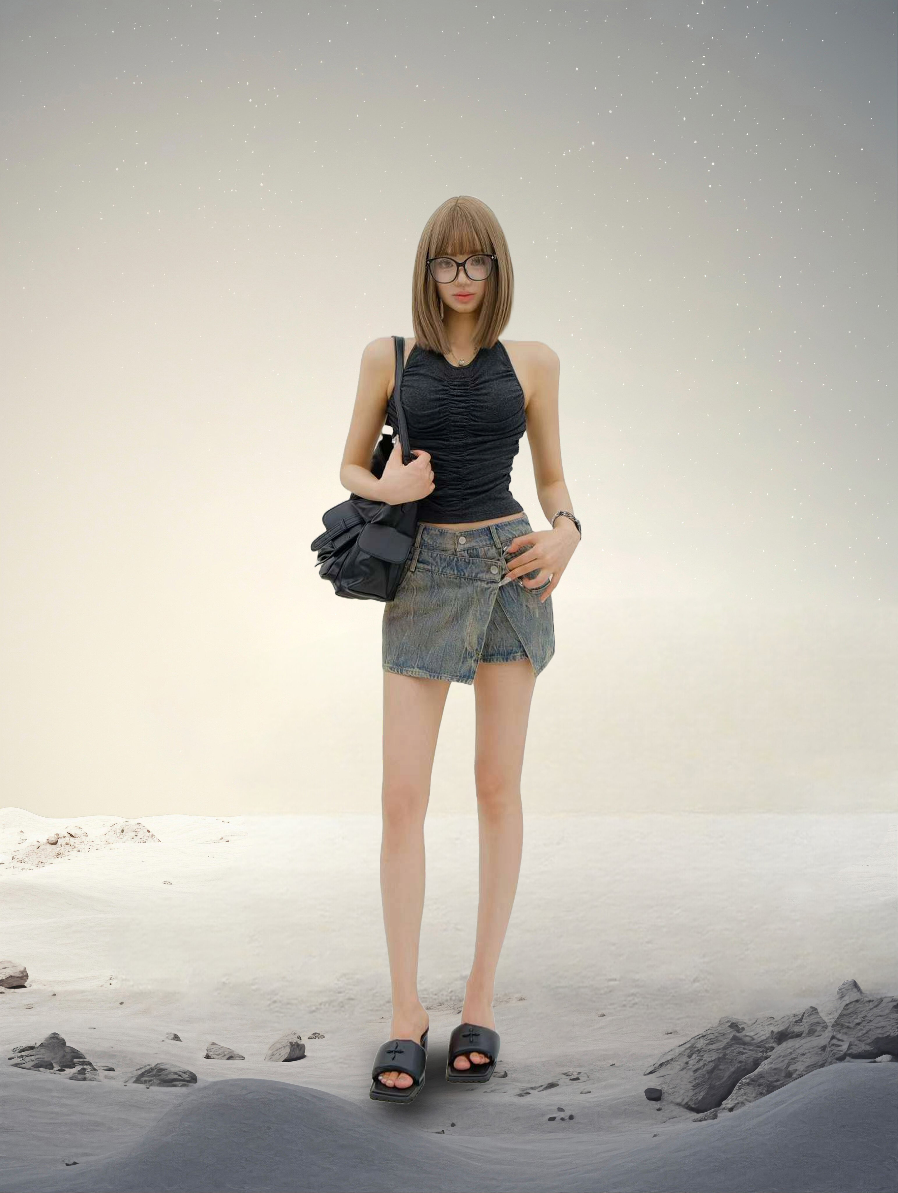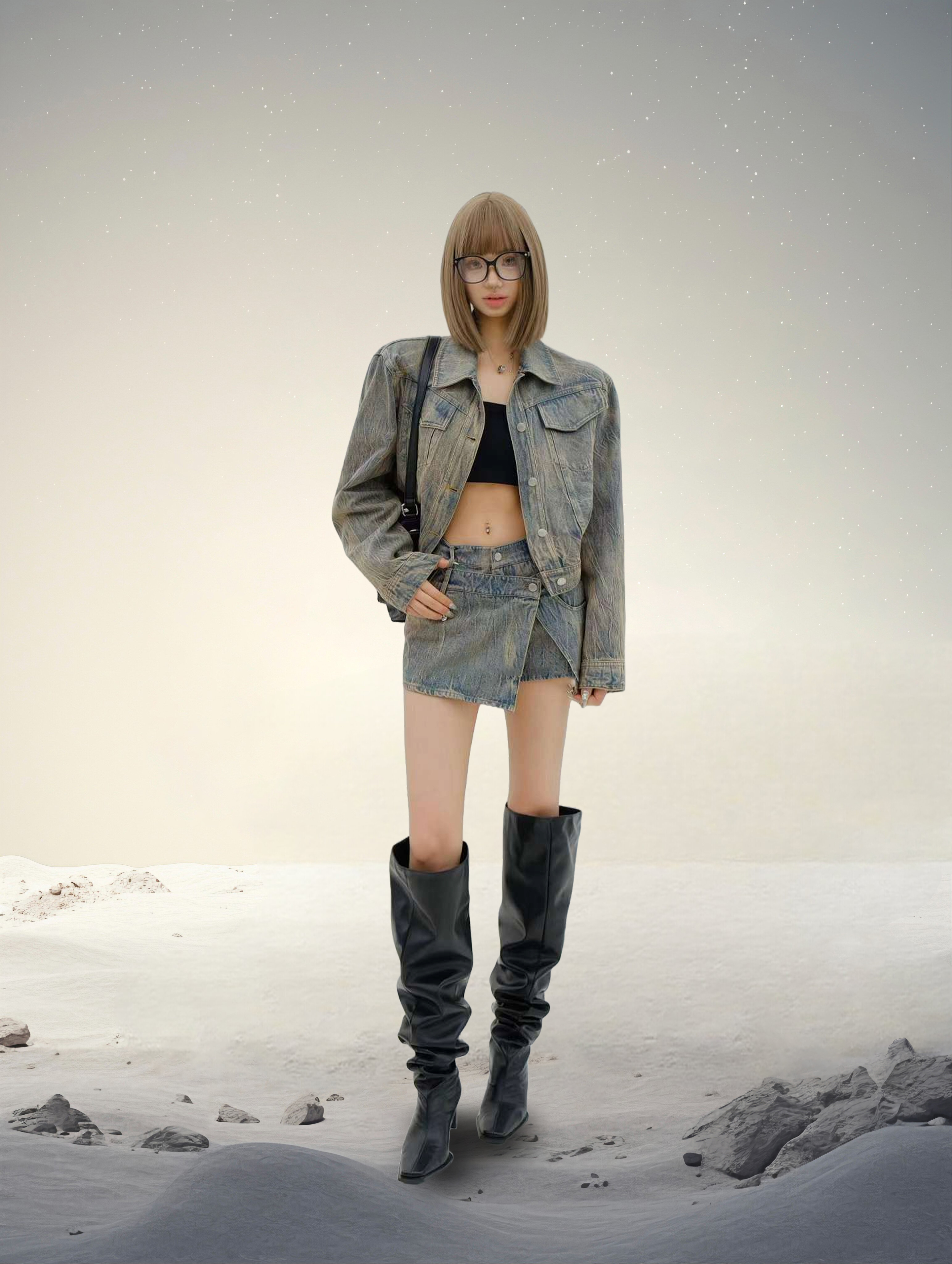 仿舊丹寧牛仔褲裙 ( 自由拆卸/兩穿 )