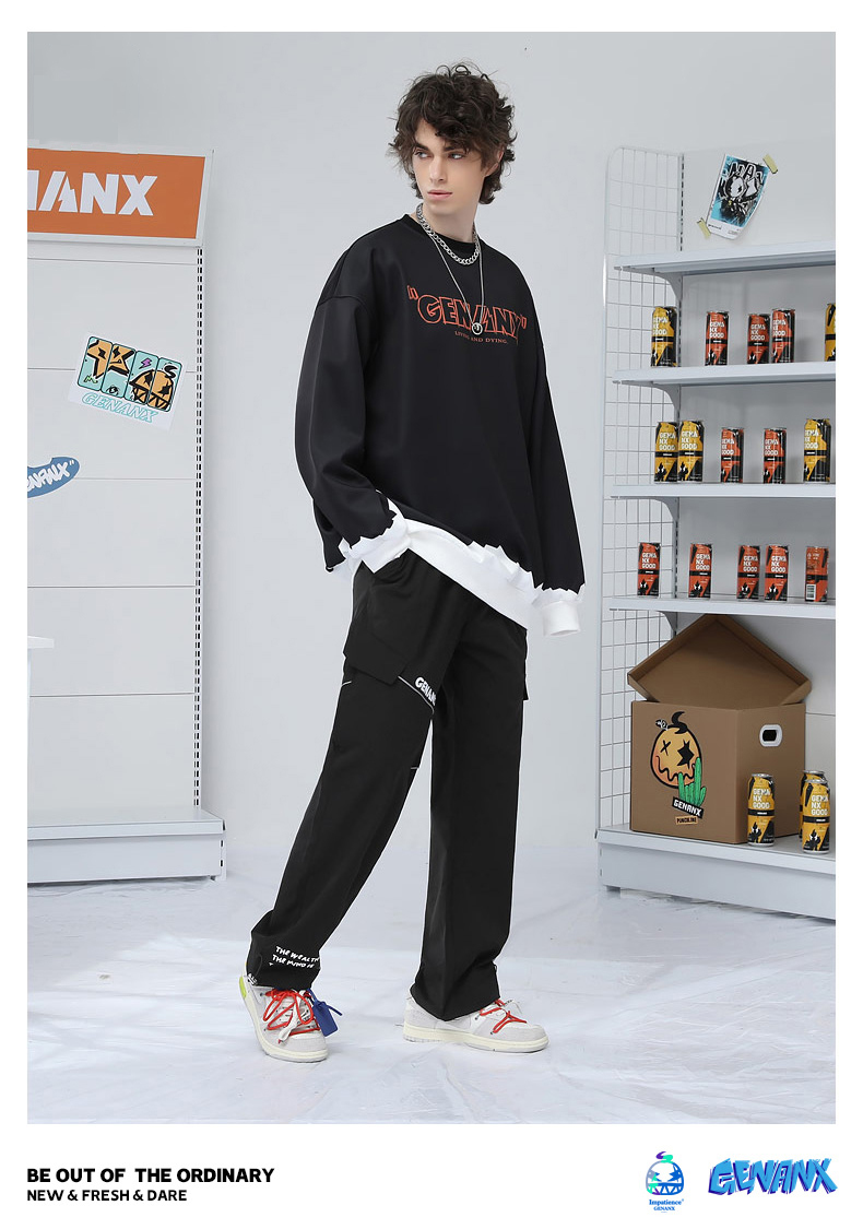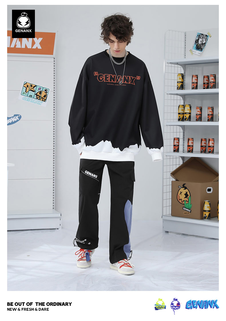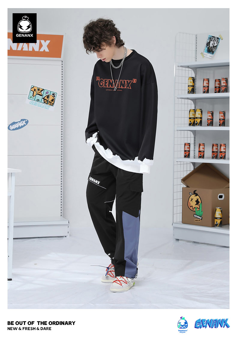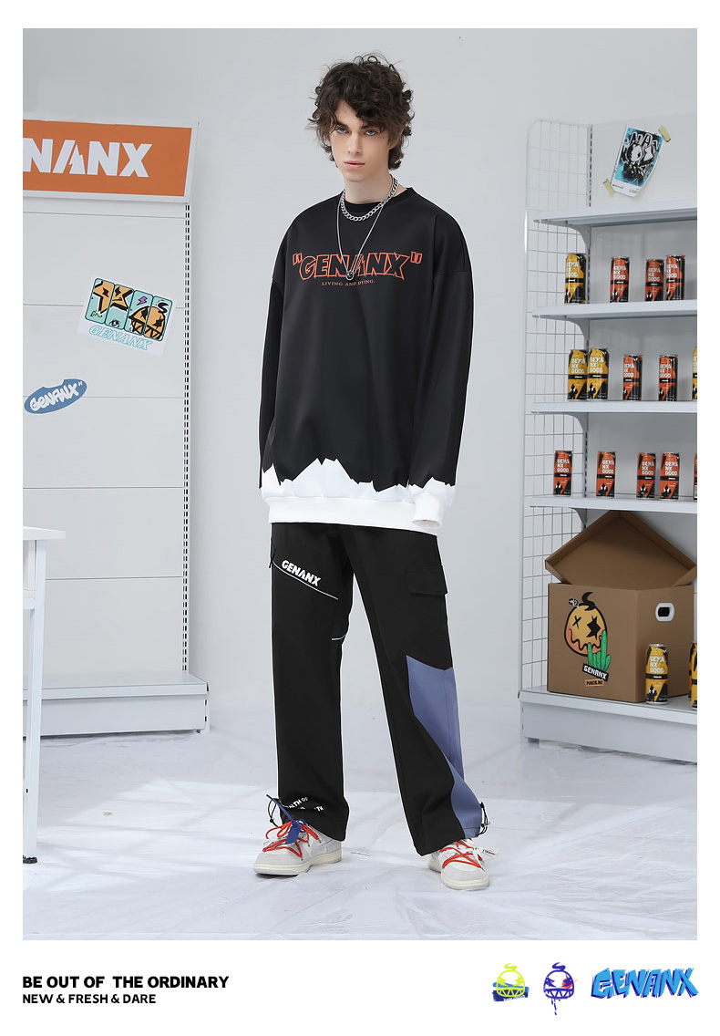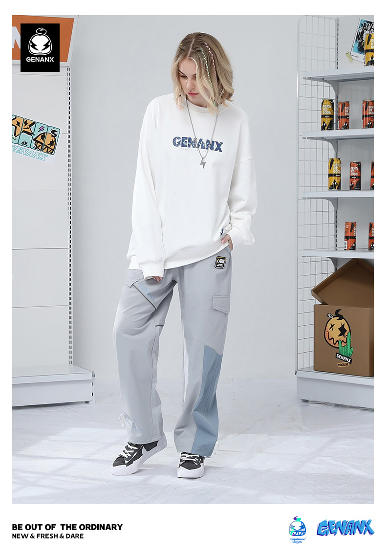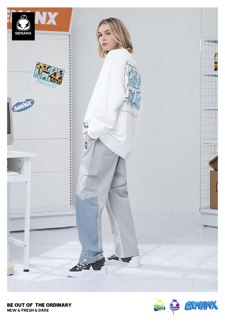 反光條拼接縮口長褲