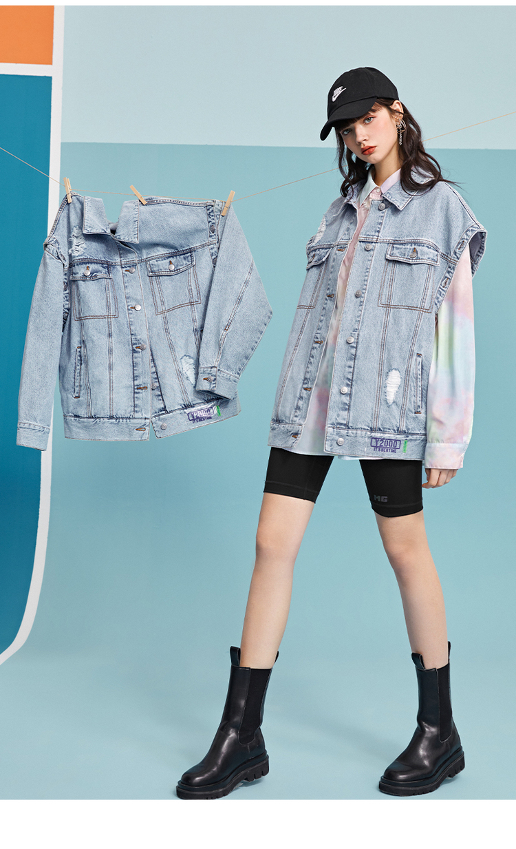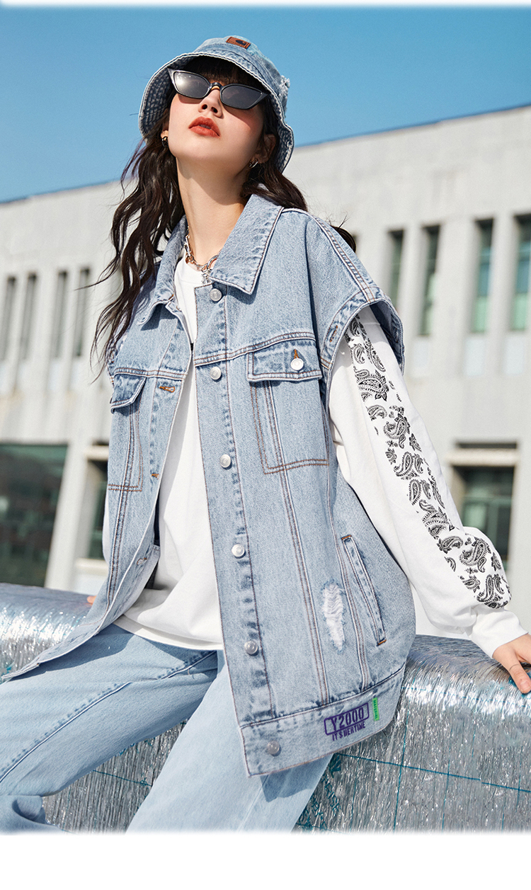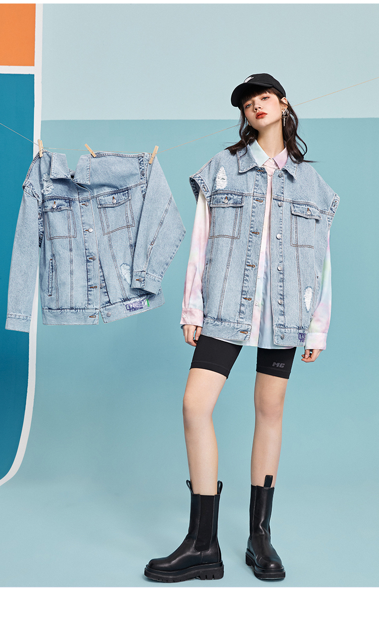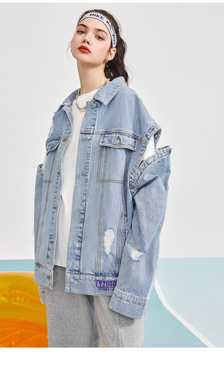 一衣兩穿可拆卸仿舊刷破牛仔外套