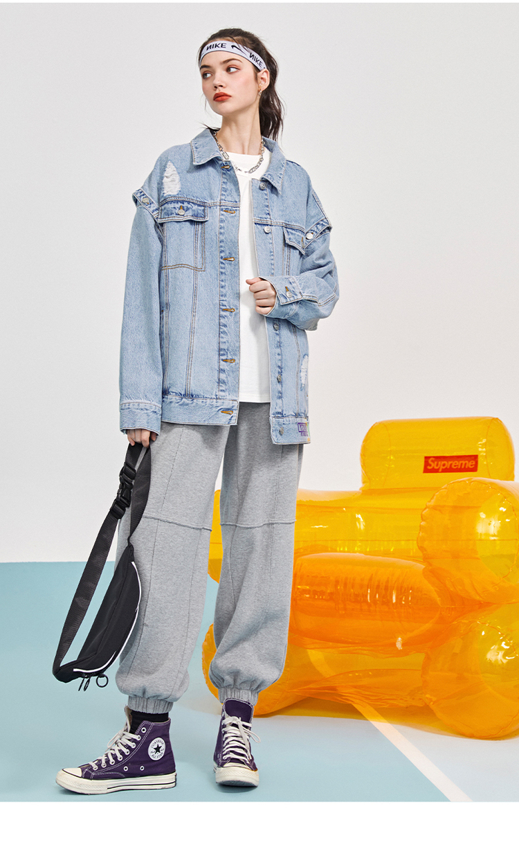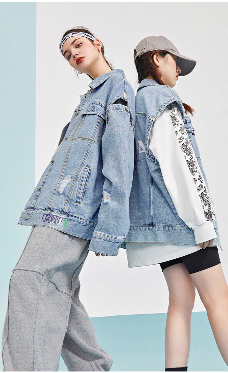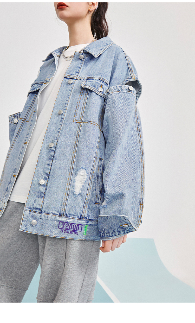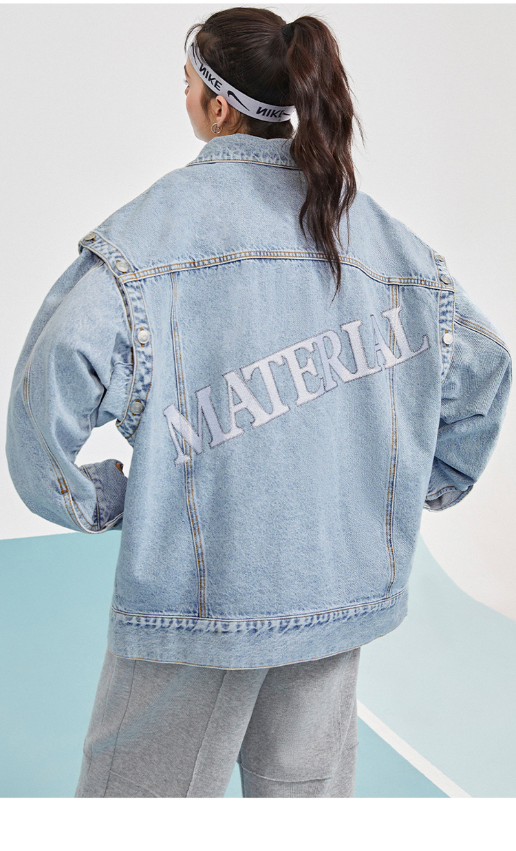 一衣兩穿可拆卸仿舊刷破牛仔外套