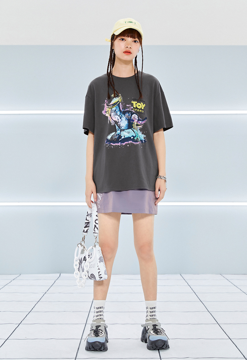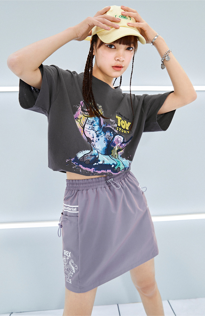 Disney®TOY STORY Rex抱抱龍金屬光澤A字短裙