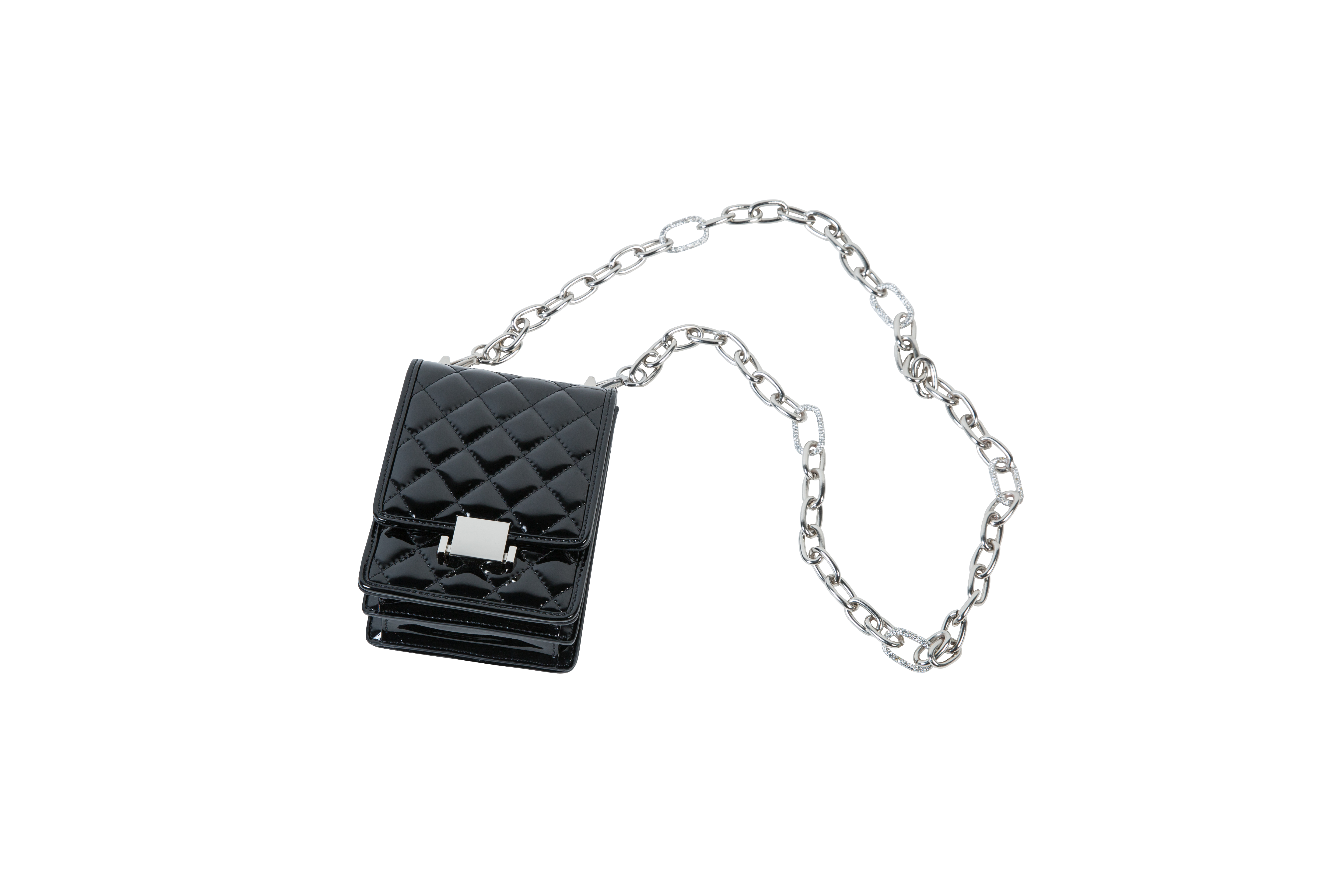 名媛風亮面皮革菱鑽石鍊條斜肩背包