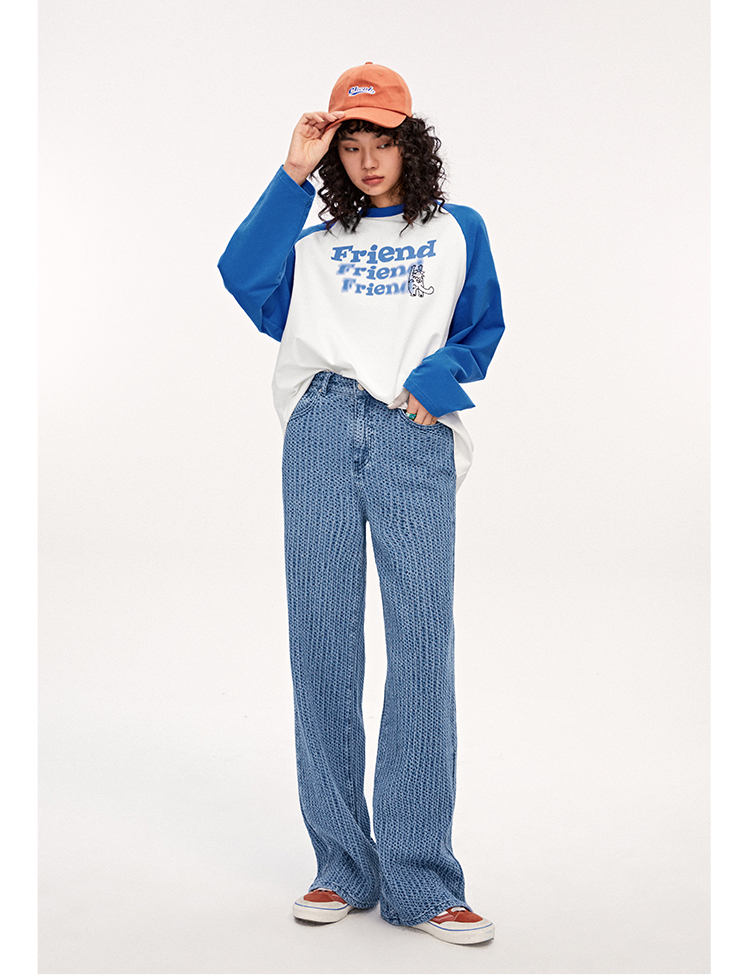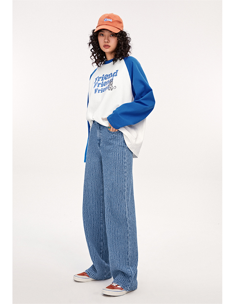 針織紋理感牛仔長褲