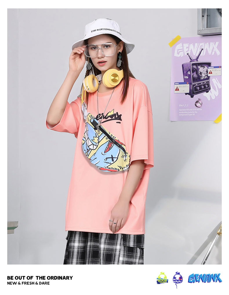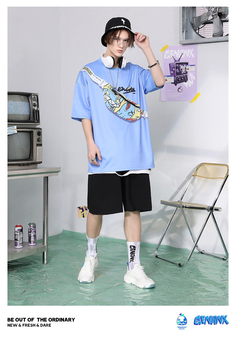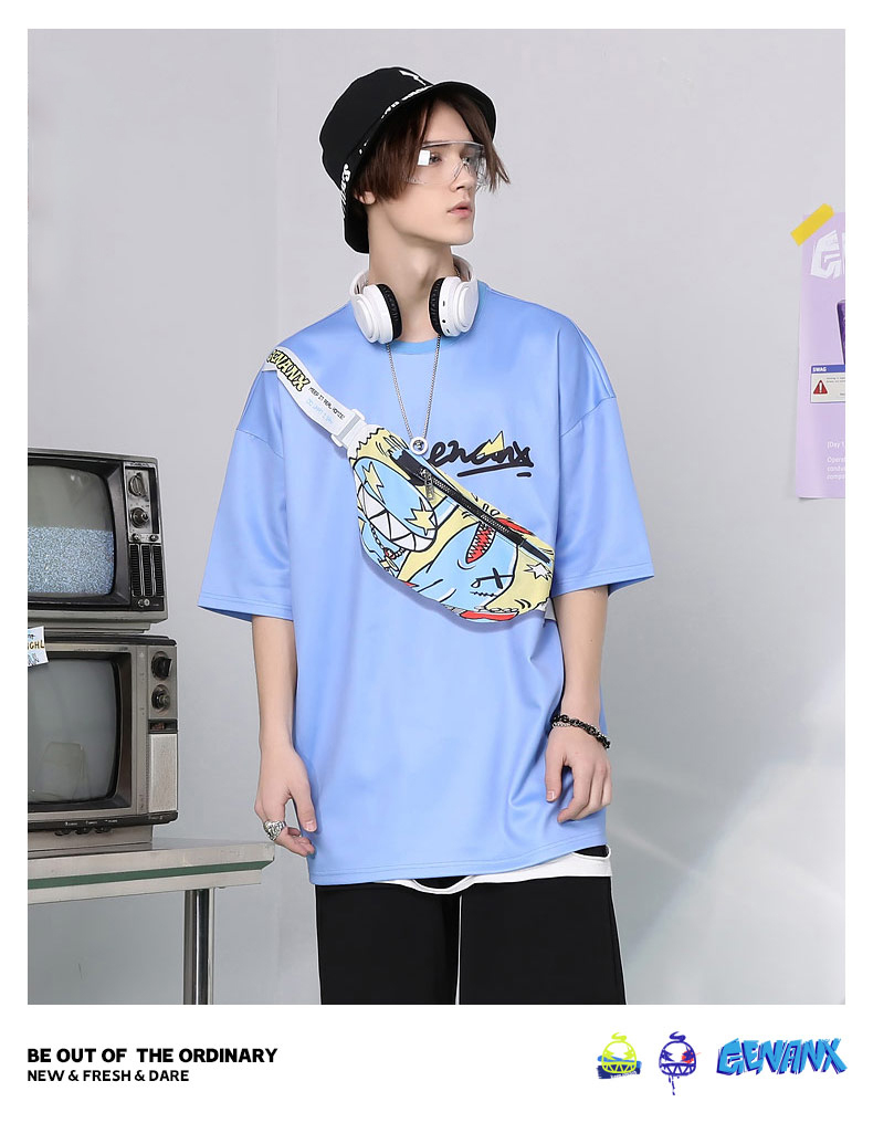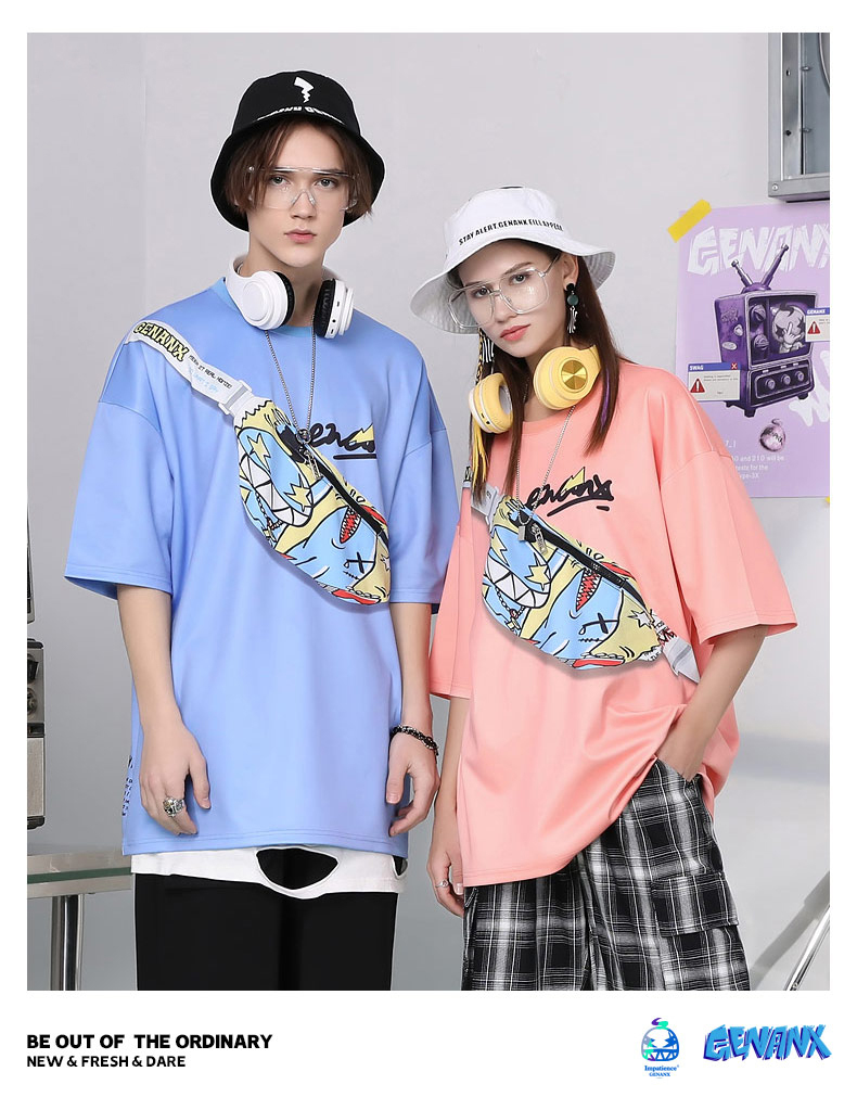 胸前造型腰包斜口袋上衣