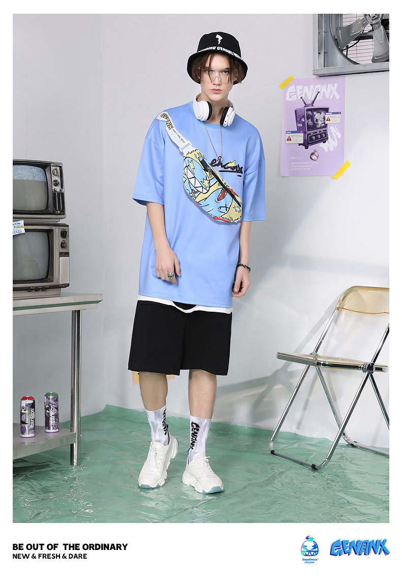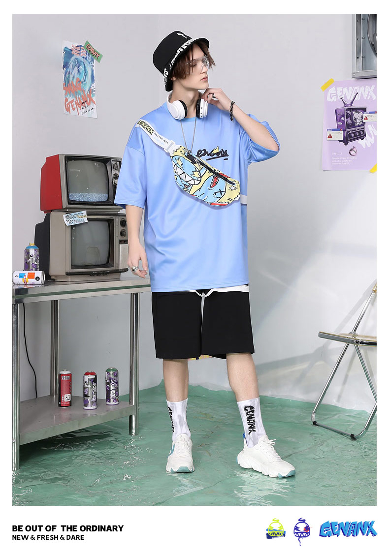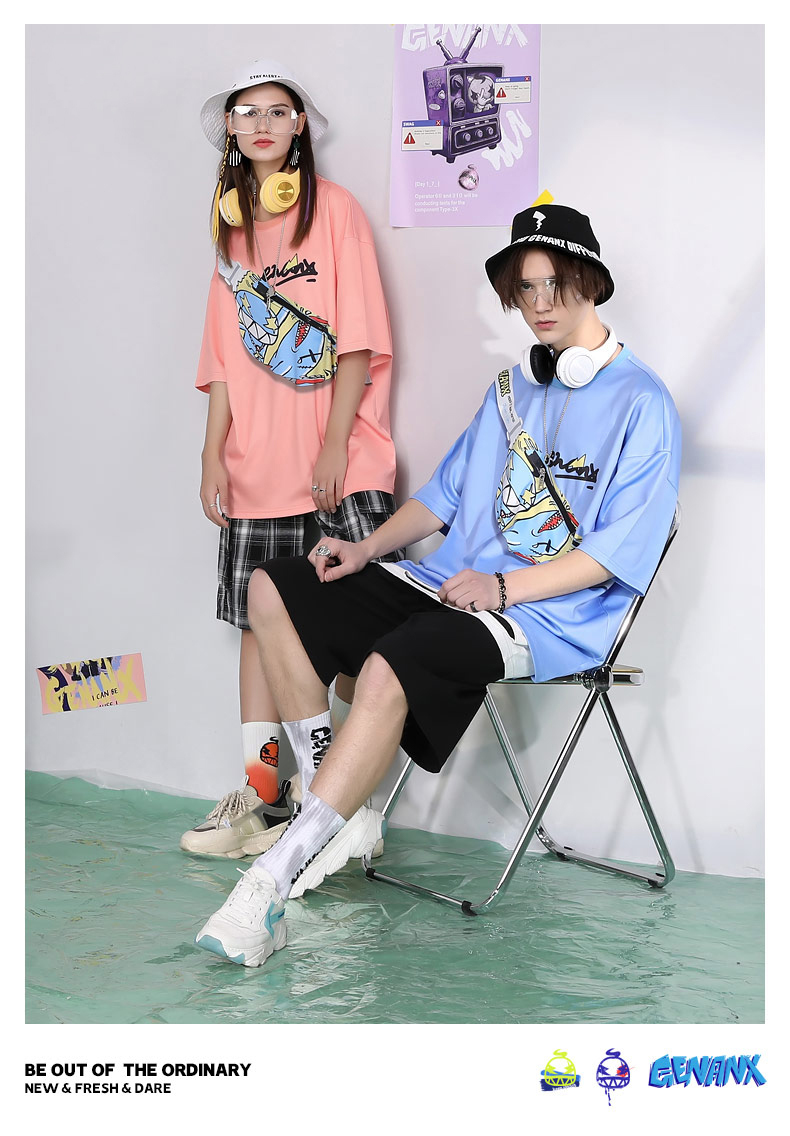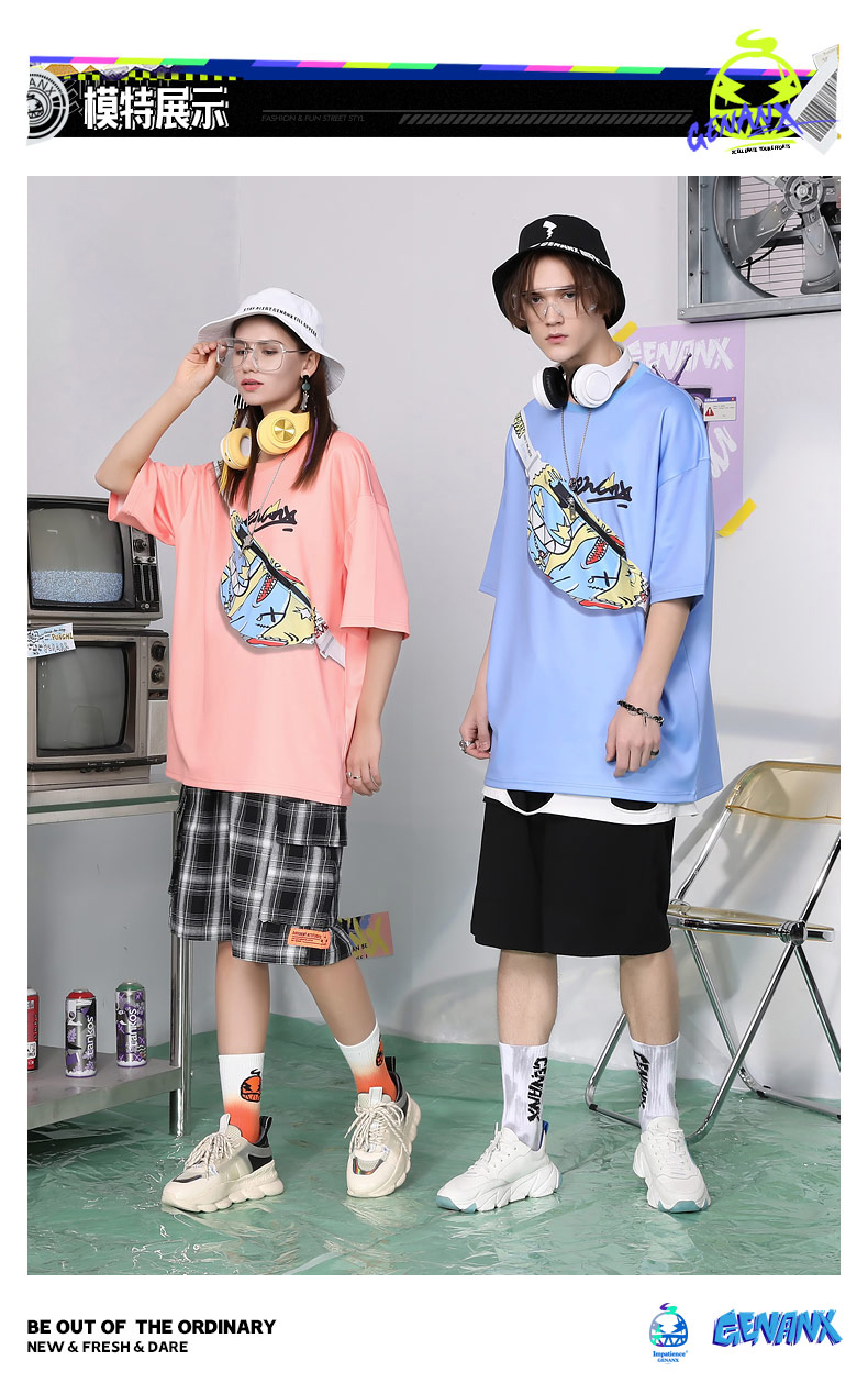 胸前造型腰包斜口袋上衣