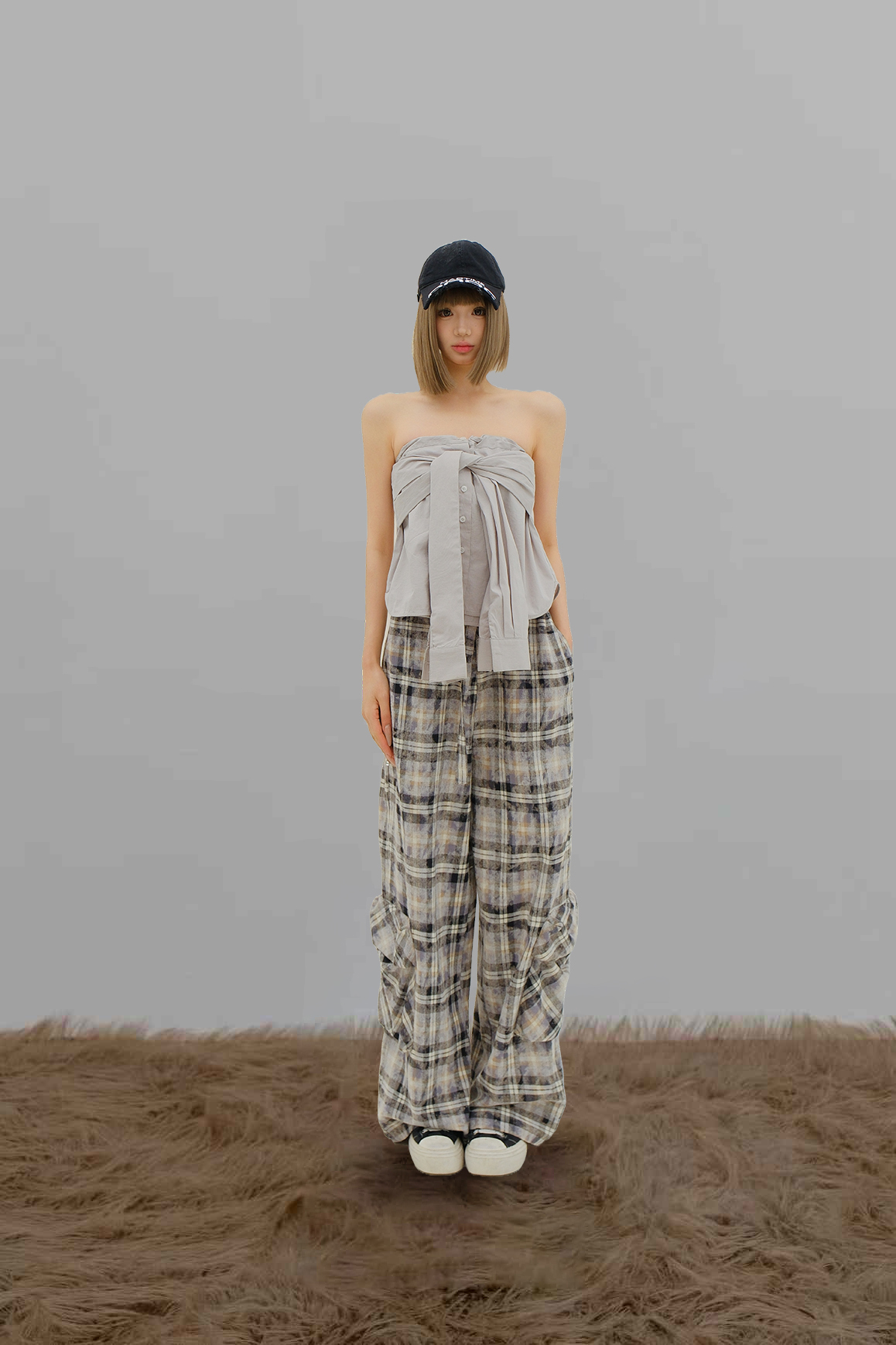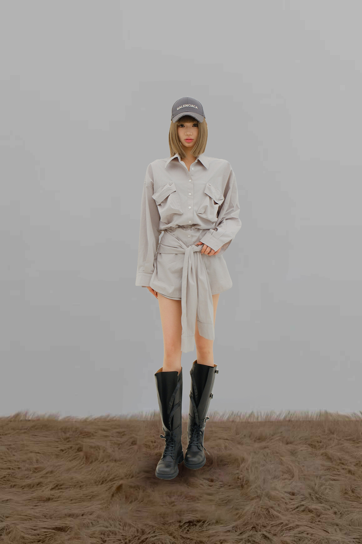 素色綁帶襯衫上衣/短裙(兩穿式;可當上裝或下裝)
