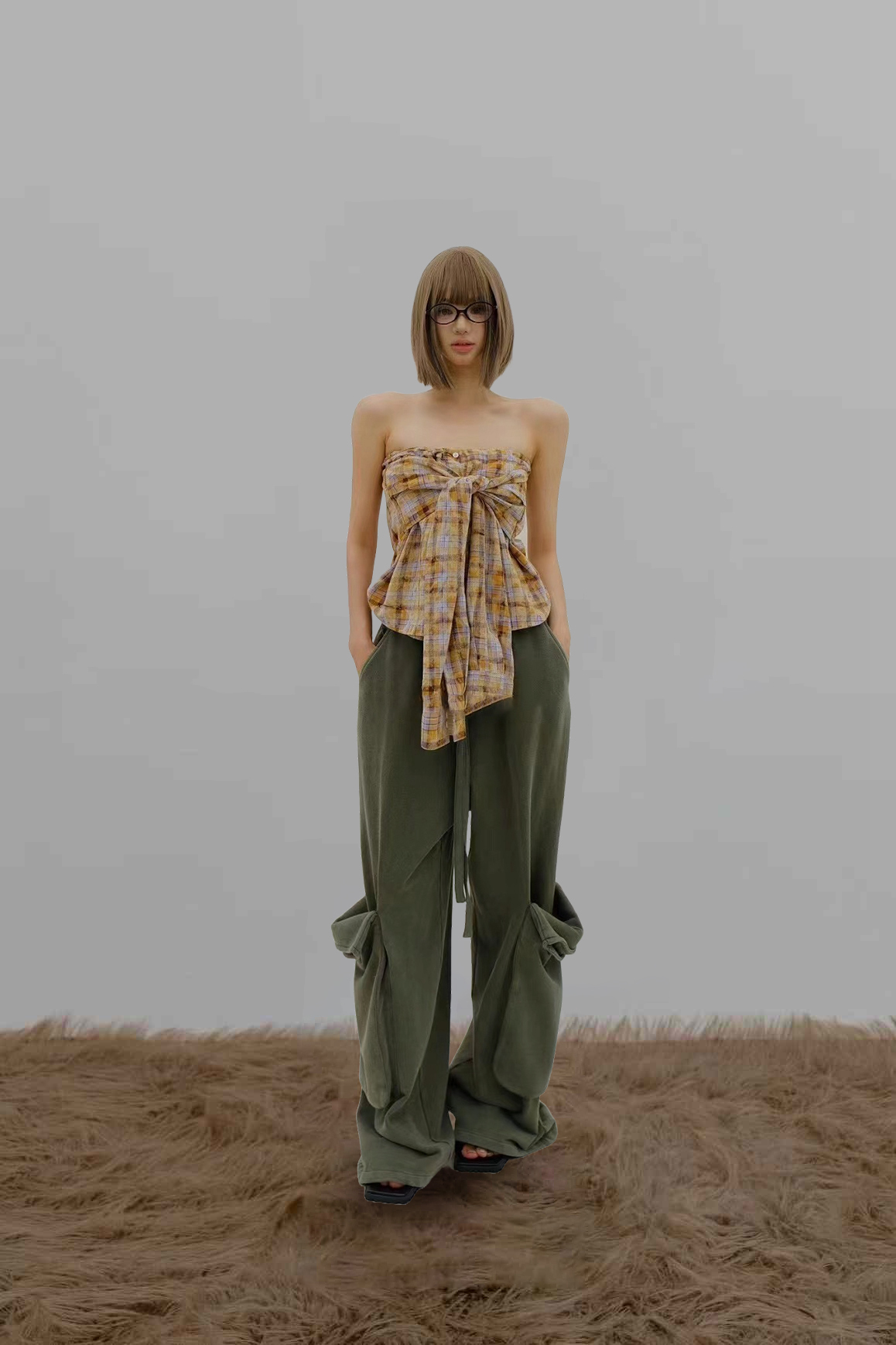 格紋綁帶襯衫上衣/短裙(兩穿式;可當上裝或下裝)